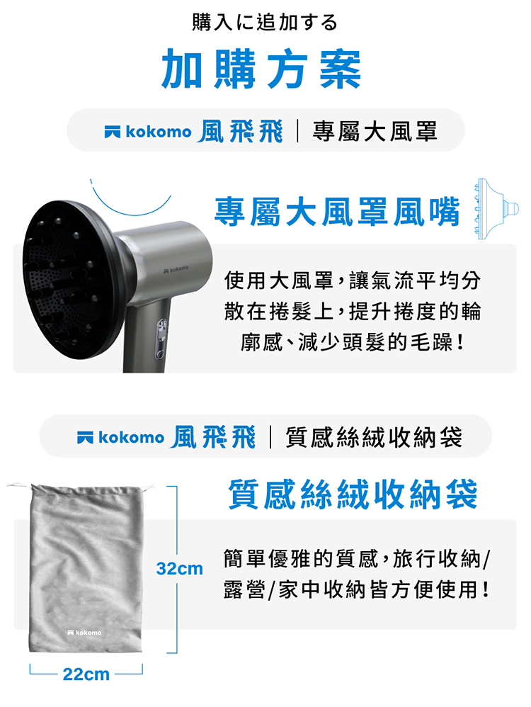 【商品名稱】kokomo風飛飛 日本負離子高速吹風機 KO-IH2335 ( 灰銀色/珍珠白)