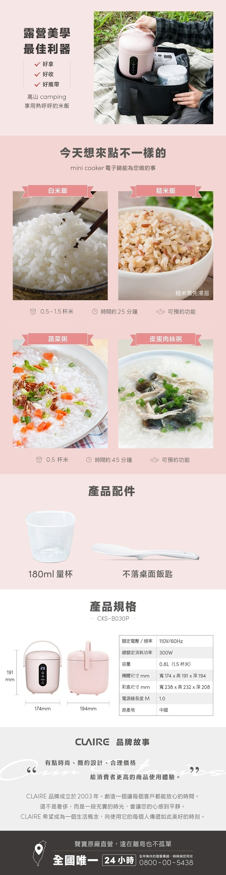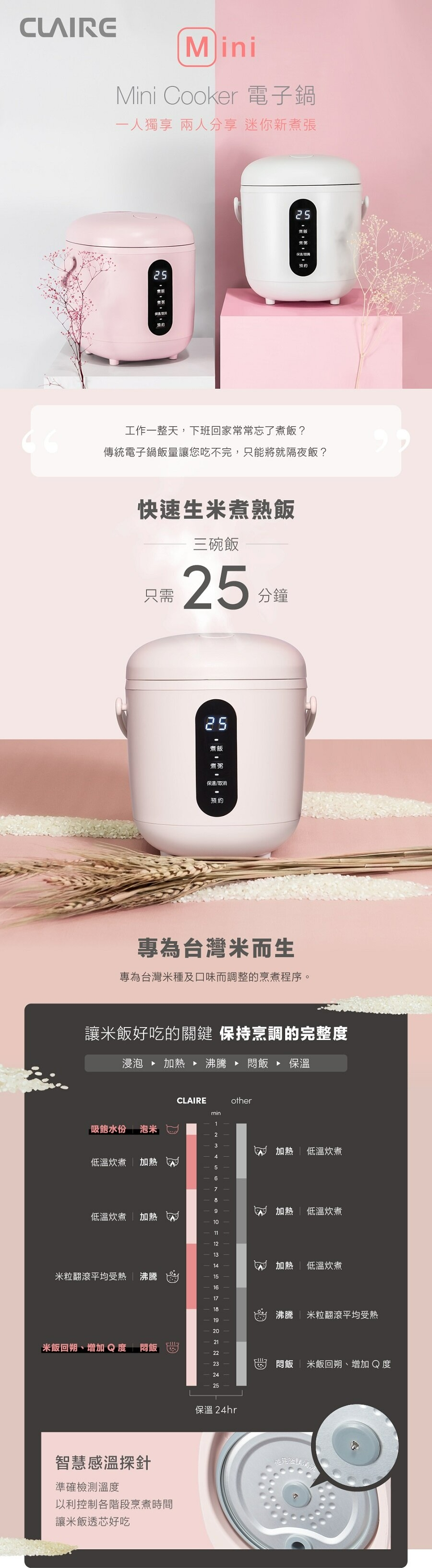 【商品名稱】CLAIRE mini cooker 電子鍋-蜜桃粉CKS-B030P