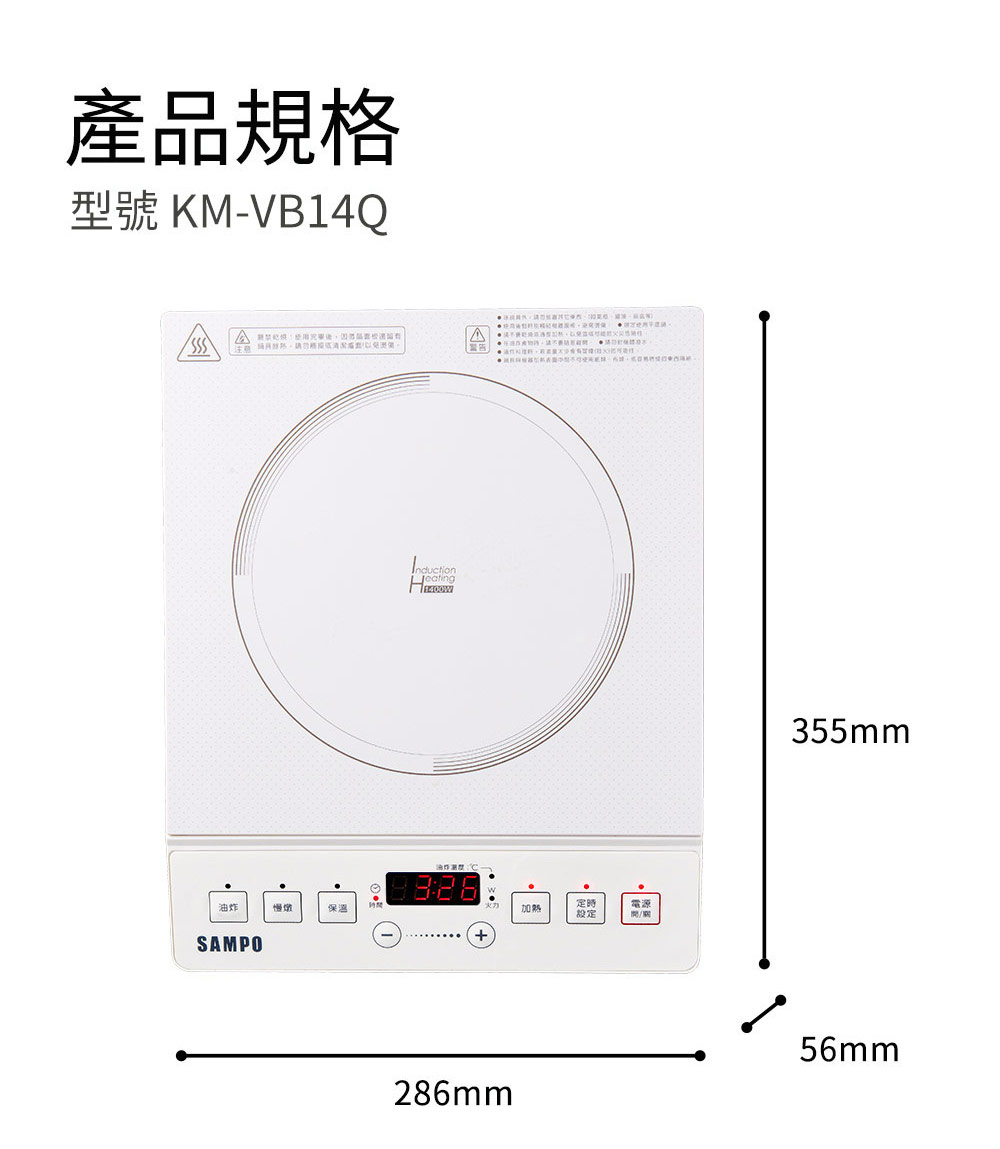 【商品名稱】聲寶微電腦智慧變頻IH電磁爐(KM-VB14Q)
