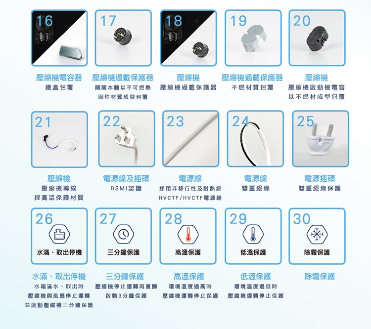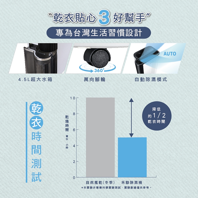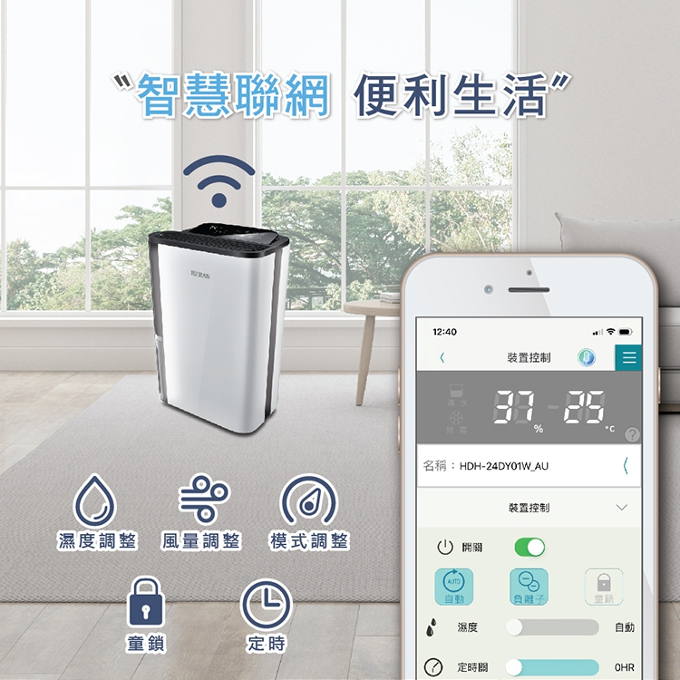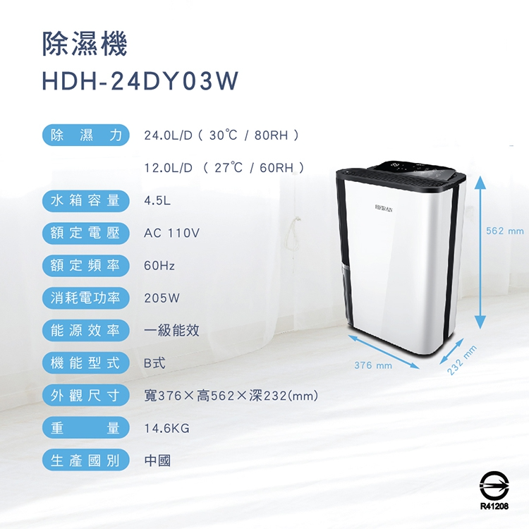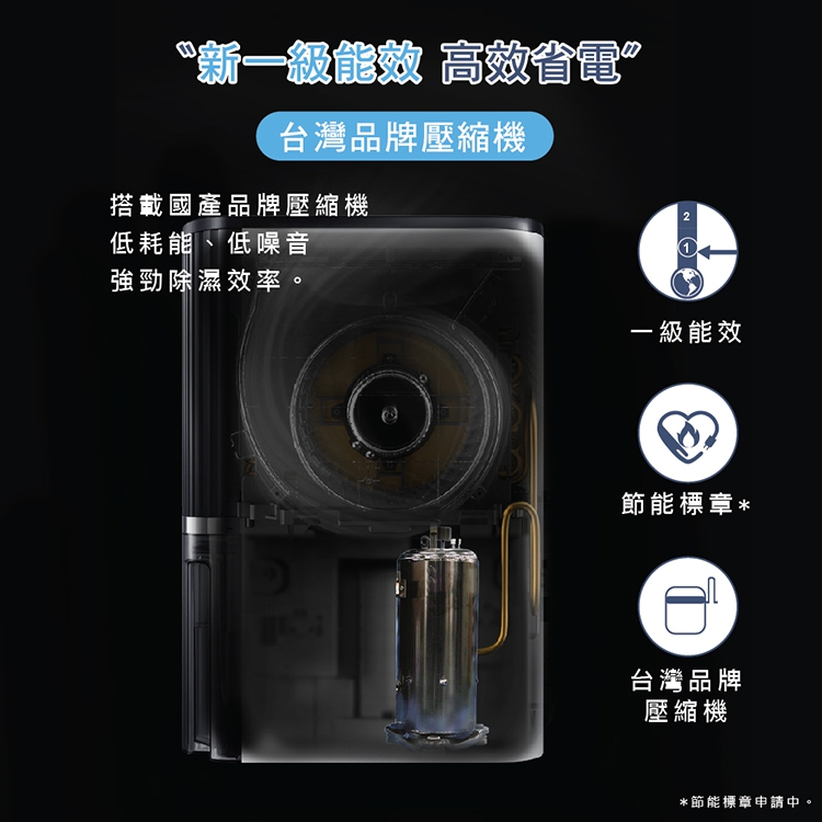 .除濕能力:24 L/日 (30℃/80RH)、12 L/日 (27℃/60RH)
