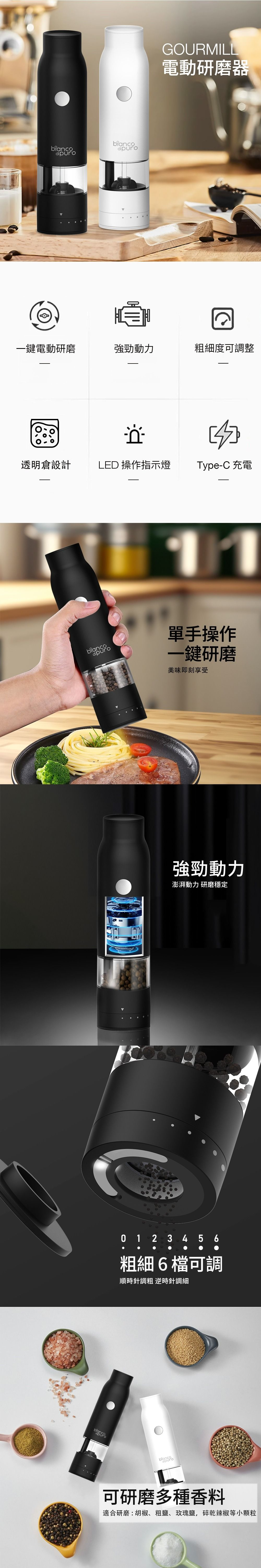 .適合研磨:胡椒、粗鹽、玫瑰鹽,碎乾辣椒等小顆粒