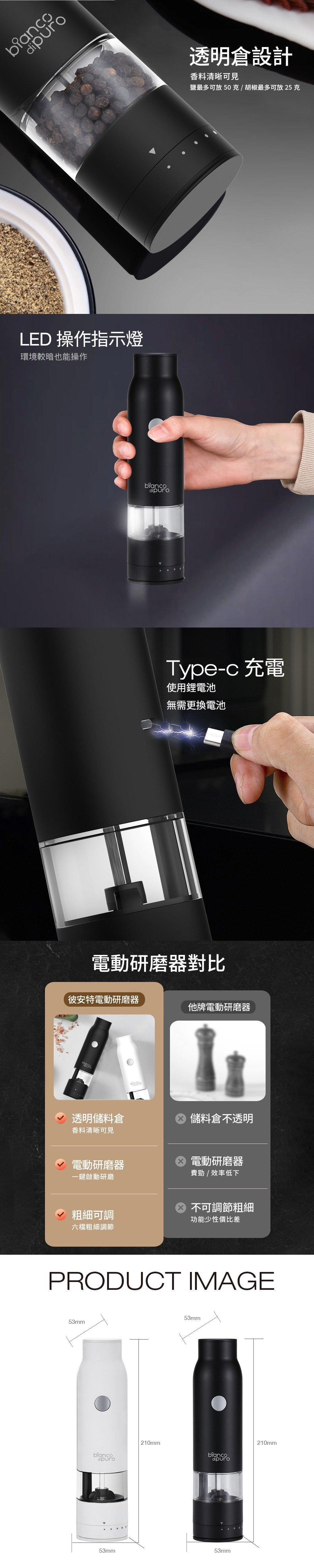 【商品名稱】Bianco di puro彼安特 電動研磨罐 黑色 白色