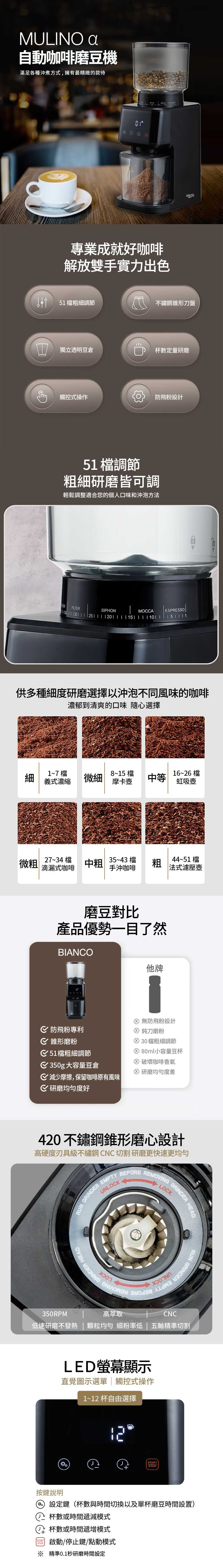 【商品名稱】Bianco di puro彼安特 MULINO α自動咖啡磨豆機 黑色
