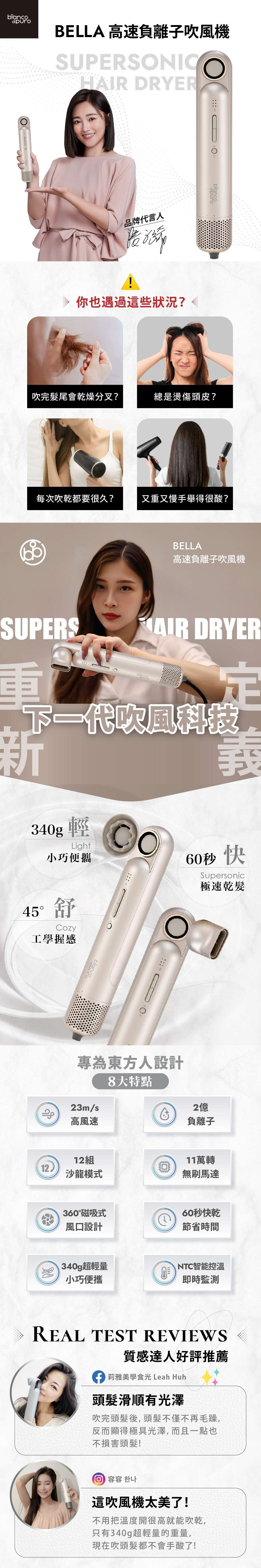 【商品名稱】Bianco di puro彼安特 Bella高速負離子吹風機薄霧金