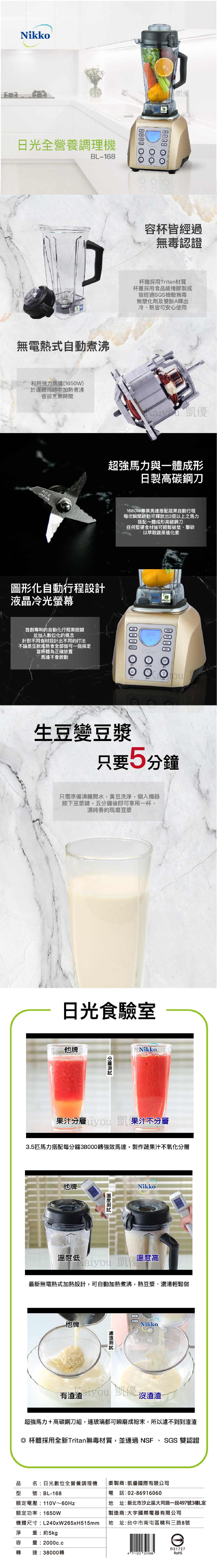 NIKKO日光 全營養調理機 BL168