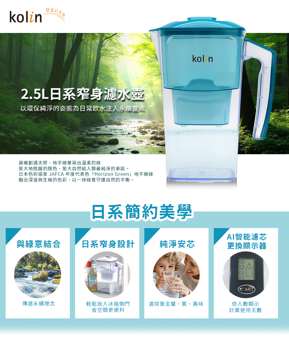 .濾水壺:210L x 100W x 260H mm