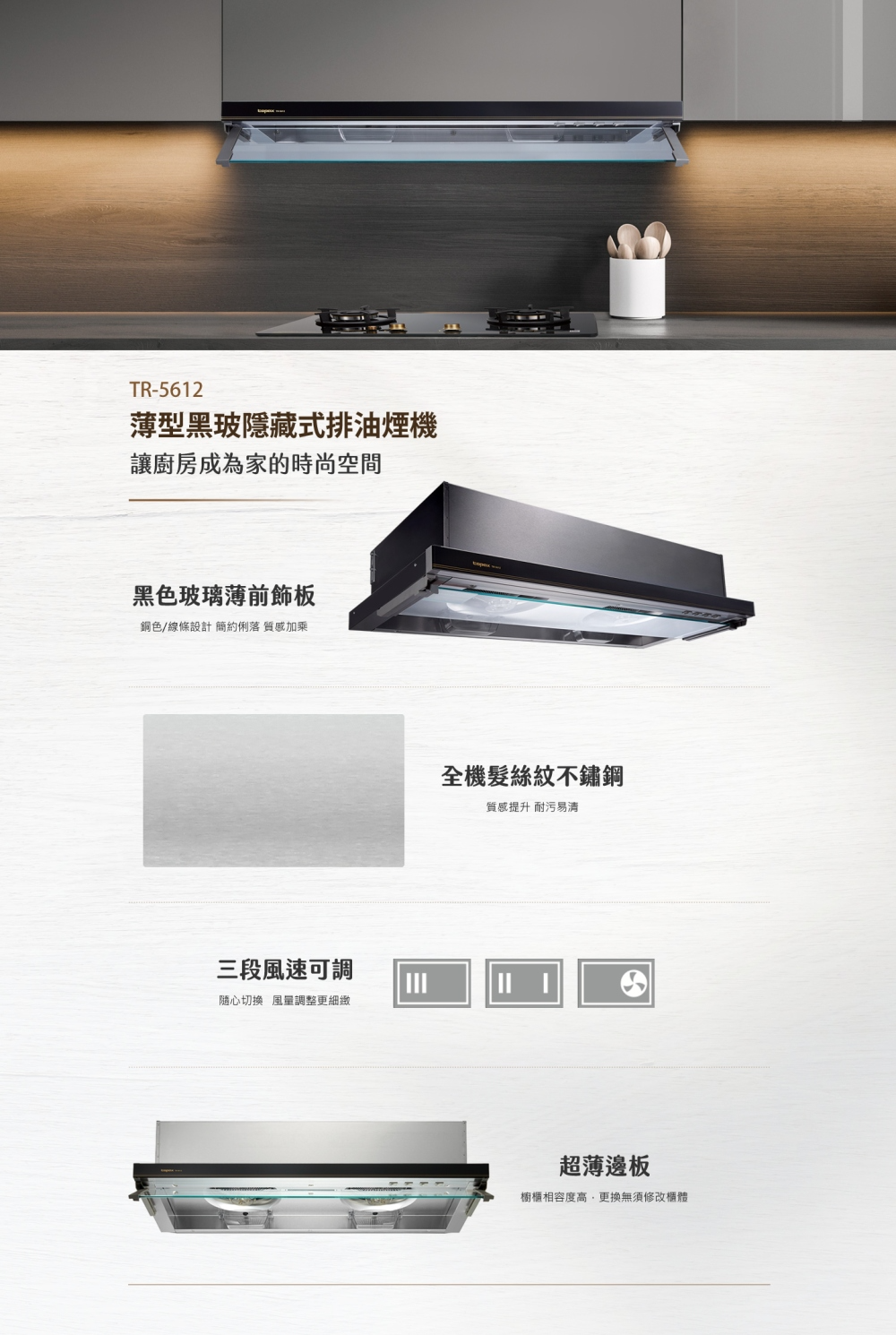 .強化玻璃擋煙板,油煙不外散