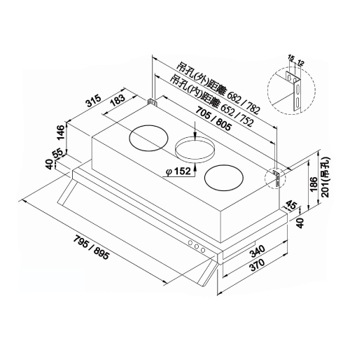 .風管口徑:Ø152mm