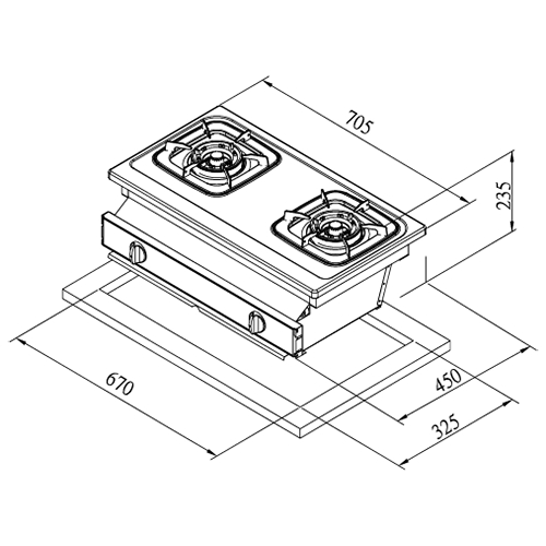 .尺寸:705 X 450 X 235mm (含爐架)