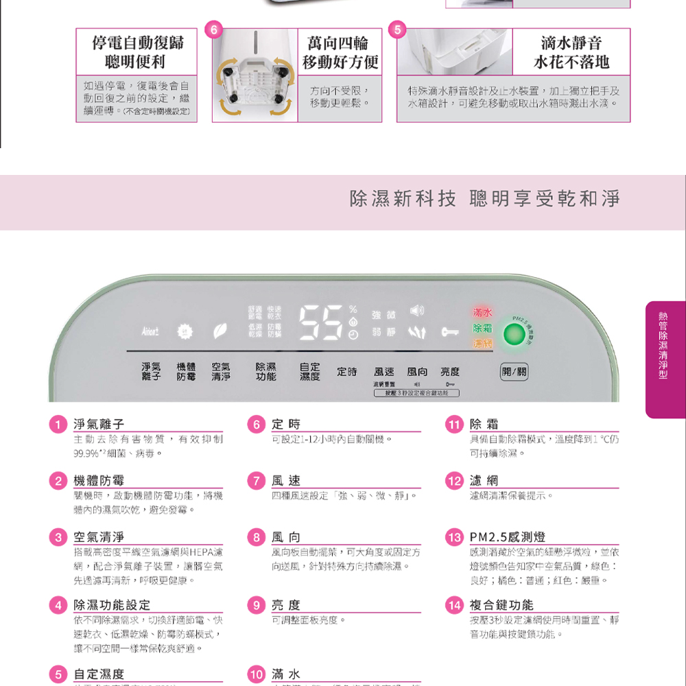功能 滿水提醒預約功能自動除霜手動除霜連續除濕