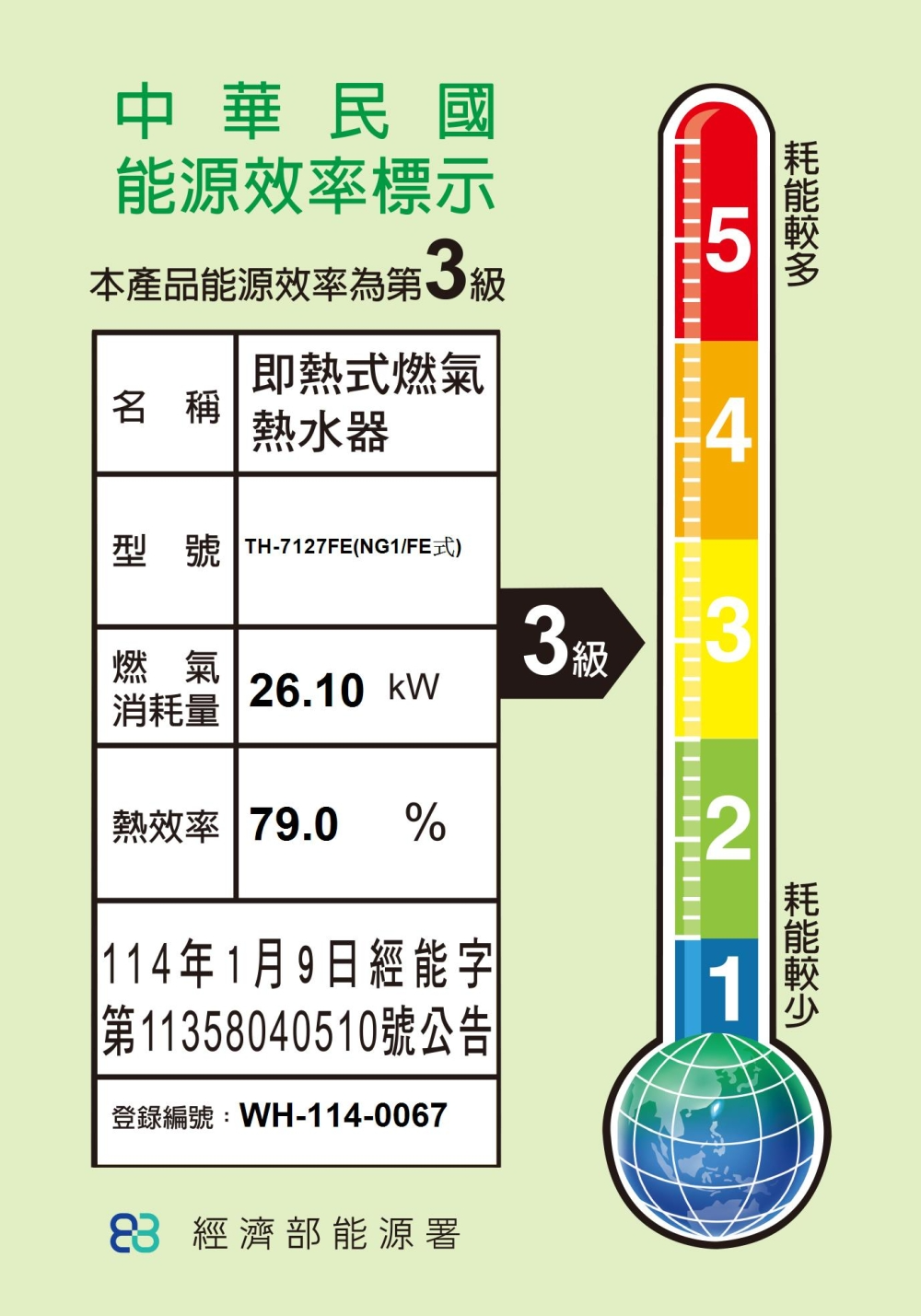 .瓦斯消耗量:LPG 26.1kW、NG 26.1kW
