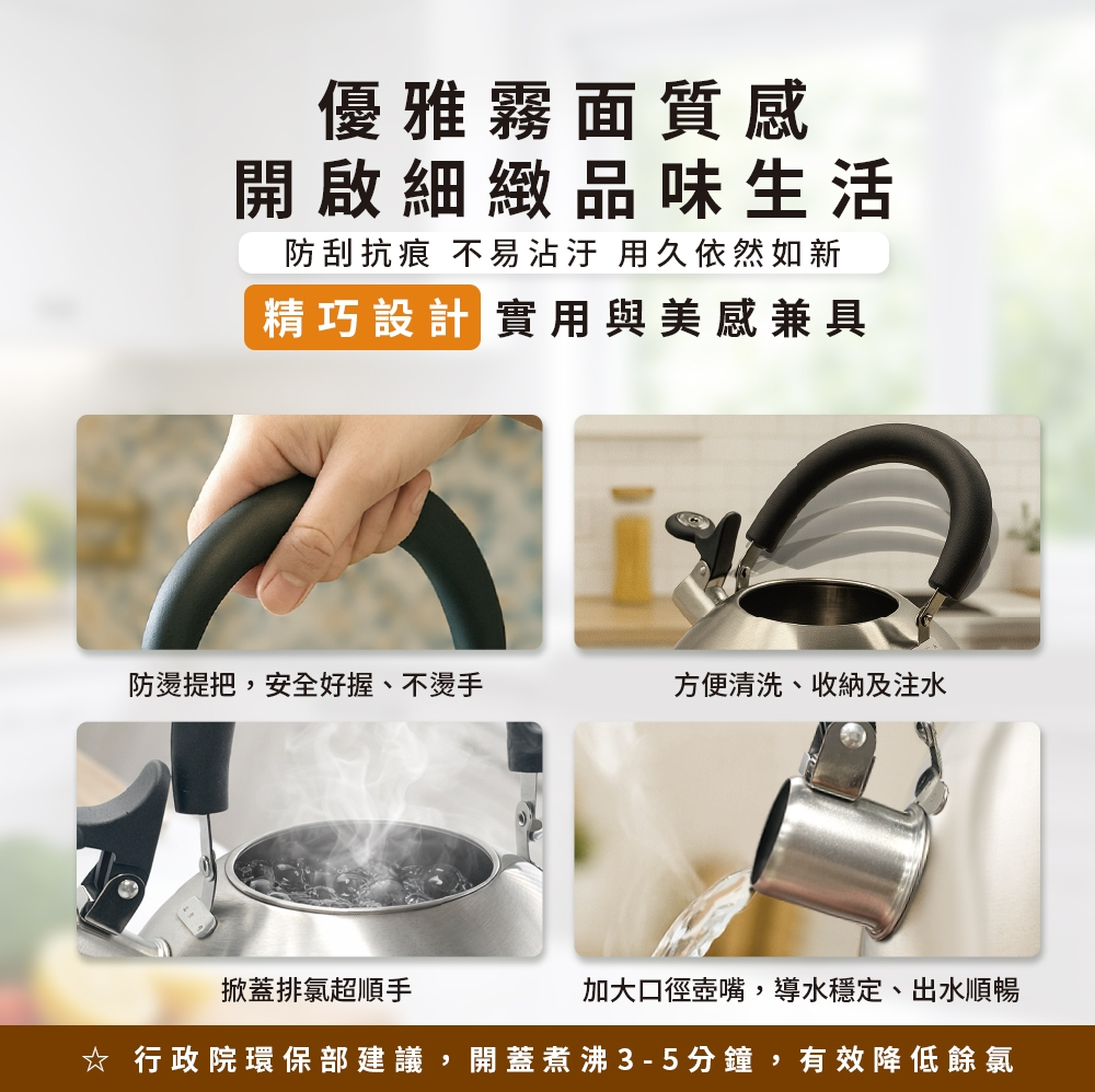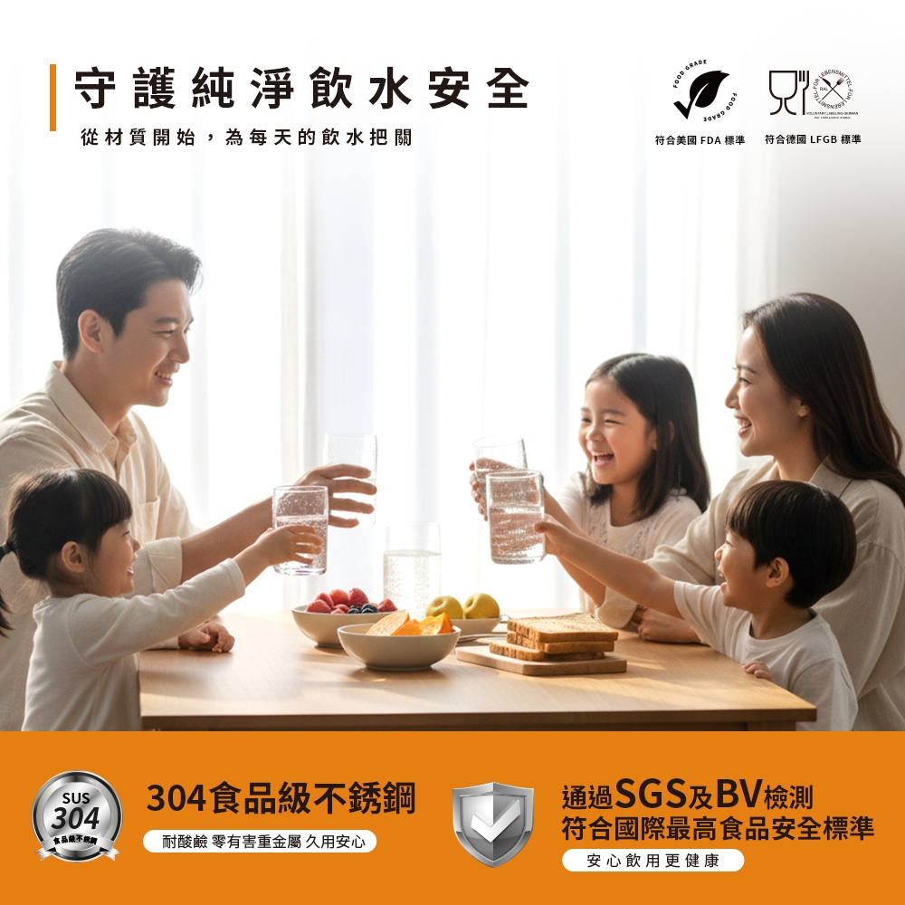 .材質:食品級304不銹鋼(通過SGS及BV檢測,符合美國FDA及德國LFGB食品安全標準)、手把及部分壺蓋:塑膠。