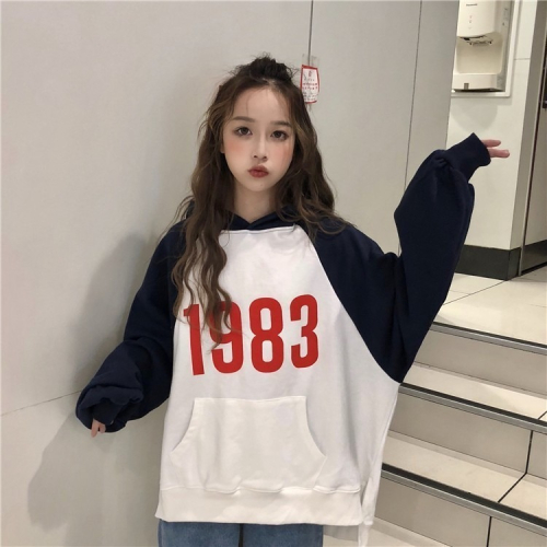 這款連帽衫是我們最新設計的女裝新品,靈感來自復古大學風,胸前大膽印上"1983"數字,簡單卻吸睛!穿起來超級舒適,不挑身材,適合各種體型女生。袖子與身體拼接色設計(藍袖白身或藍袖黃身),增添層次感,無論是日常出街、校園穿搭還是居家休閒,都能輕鬆駕馭。秋冬必備,保暖又時尚,讓你成為街頭焦點!