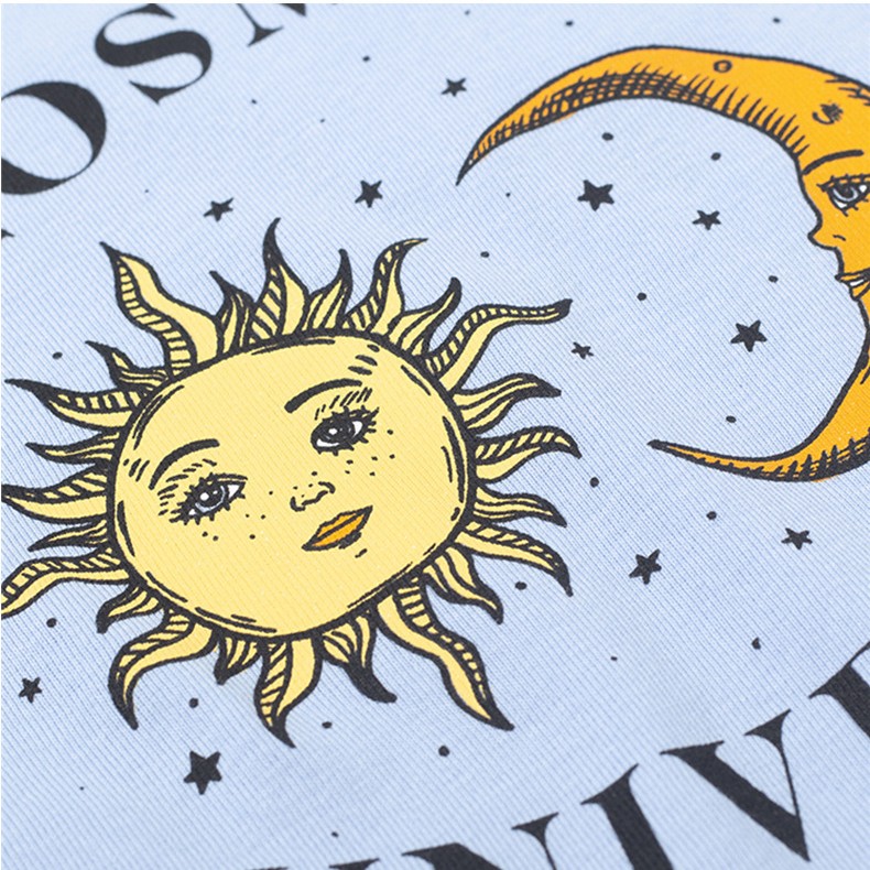 宇宙主題(藍色款):以可愛的卡通太陽和月亮為主角,象徵無限可能。藍色布料清新柔和,像天空般舒適,適合愛夢幻風的你!