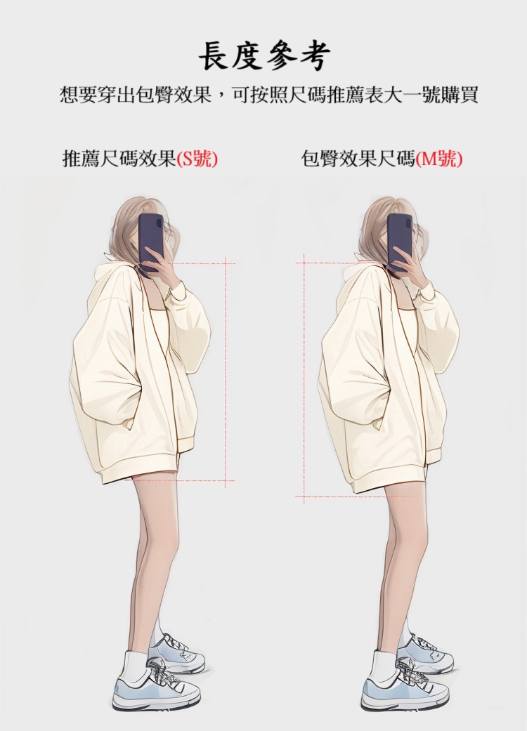 (請參考以下尺寸表,單位:cm。建議依個人身材選擇,寬鬆版型可選大一碼更慵懶!)