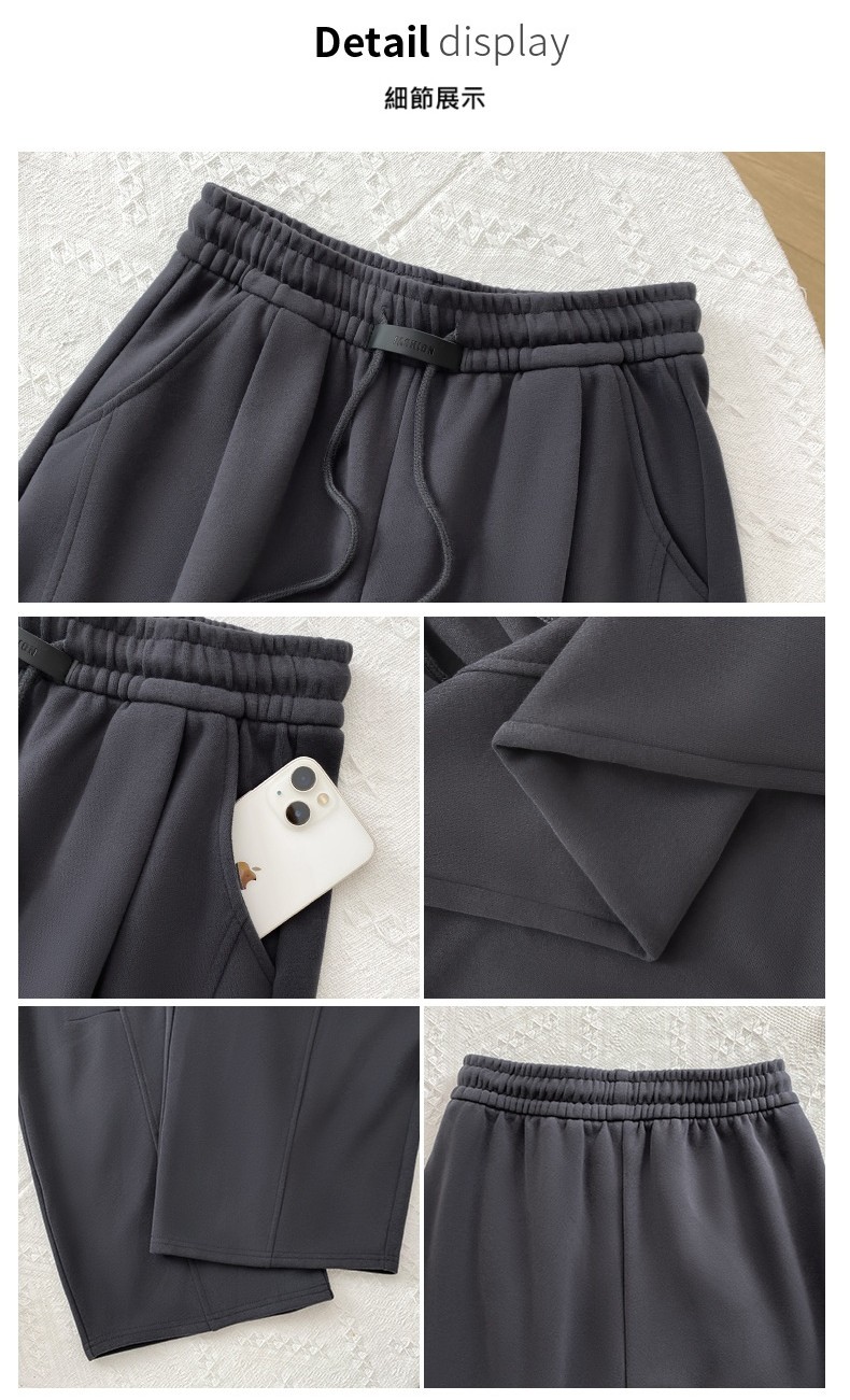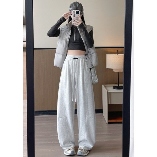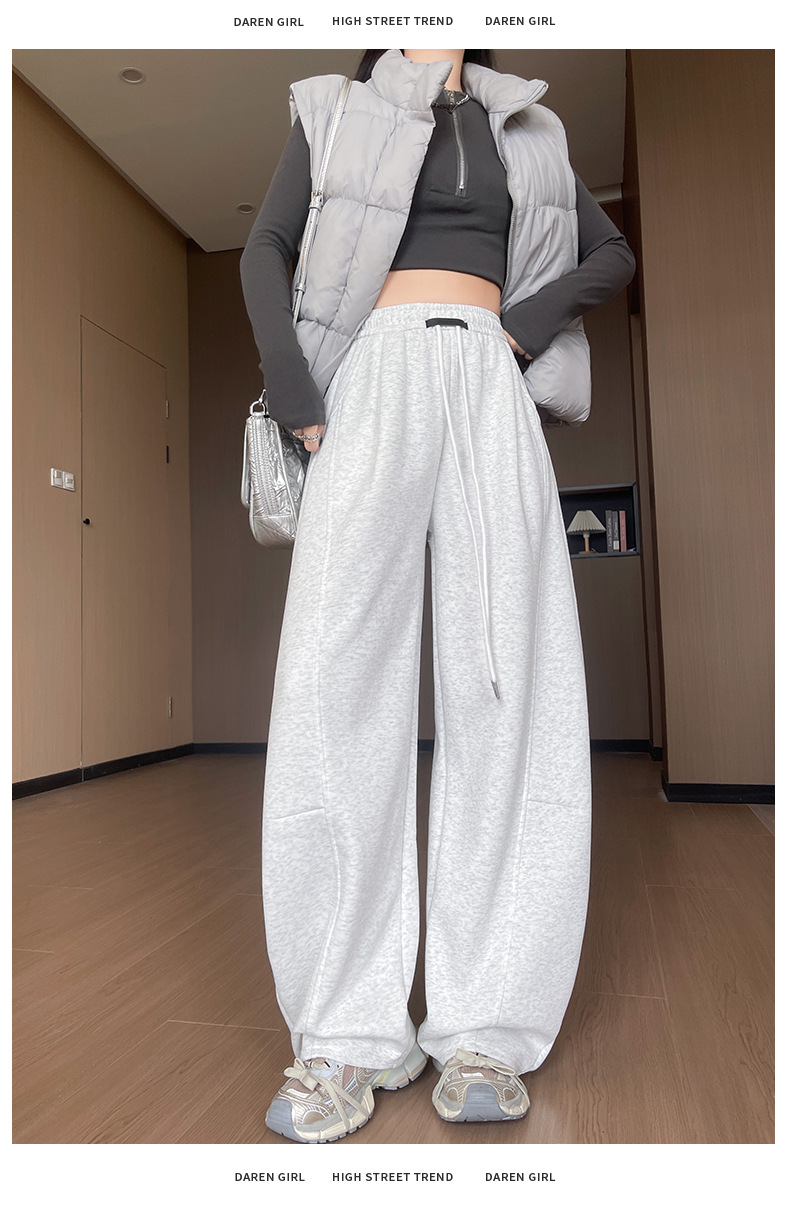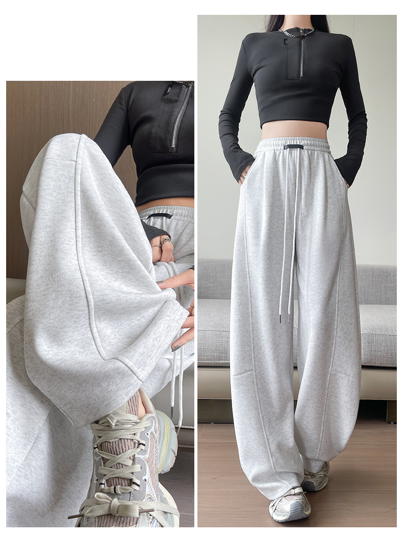街頭時尚風:靈感來自韓國街拍,簡約縫線+立體輪廓,單穿或混搭都超有型。模特示範:灰色彎刀褲搭配黑上衣和運動鞋,瞬間變身潮流ICON~