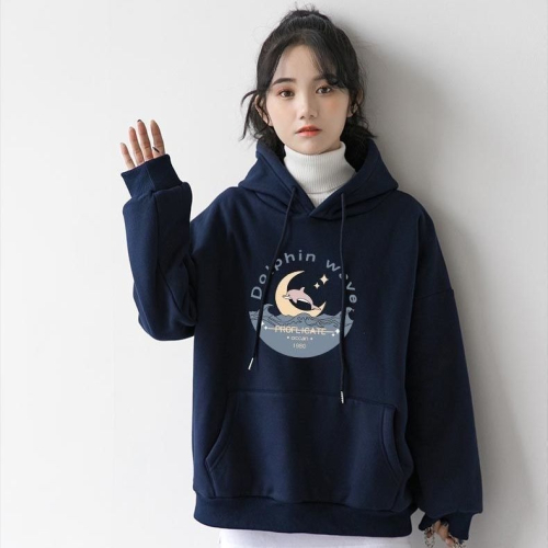 這款全新設計的連帽大學T,以可愛的海豚躍出波浪、伴隨著皎潔月亮和星星為主題,靈感來自復古的海洋冒險風格,下方印有「Profligate Oceanate 1980」字樣,充滿神秘與浪漫氛圍。無論是白天的休閒出門,還是夜晚的居家放鬆,都能讓你成為焦點!oversize寬鬆版型,適合各種身形,穿起來舒適不緊繃,完美展現街頭時尚感。