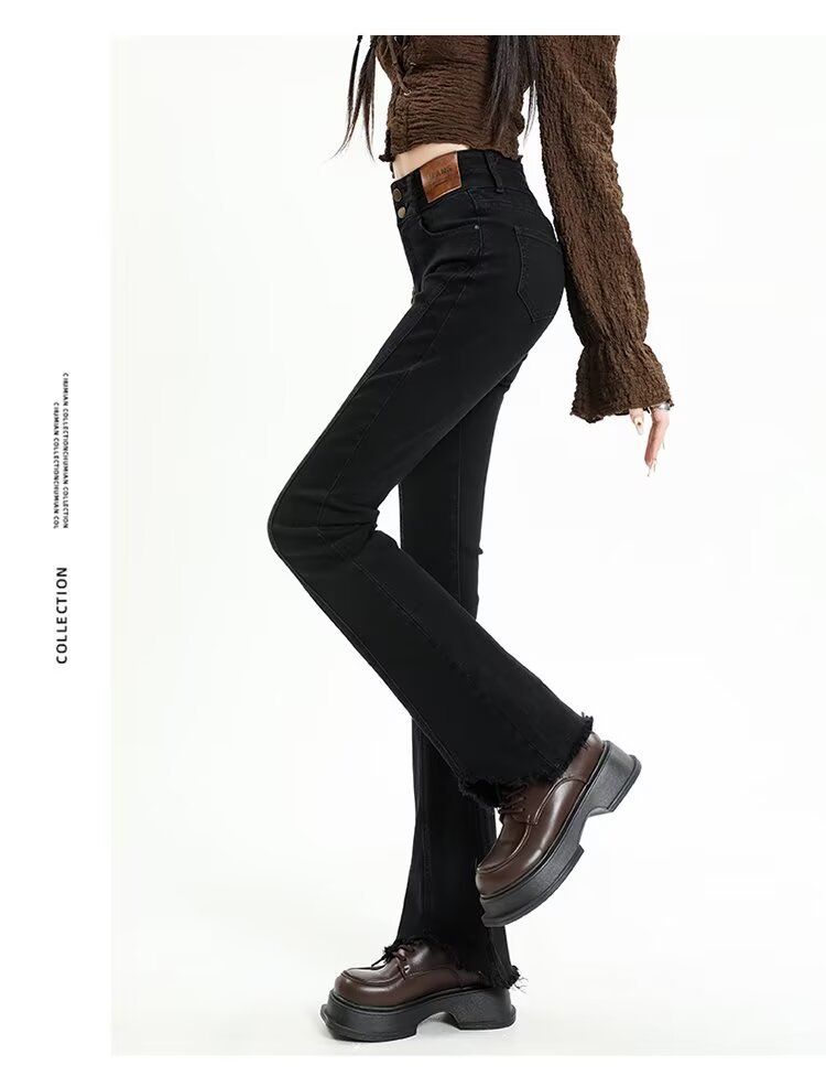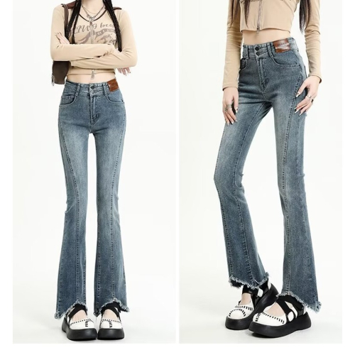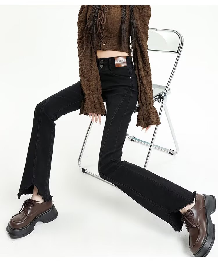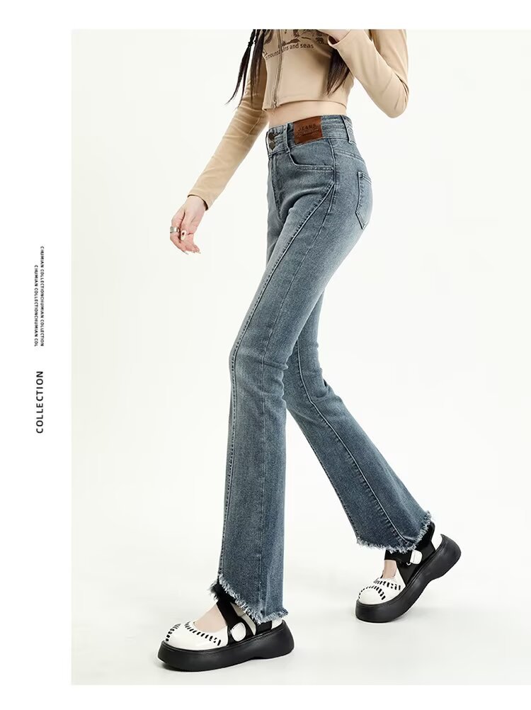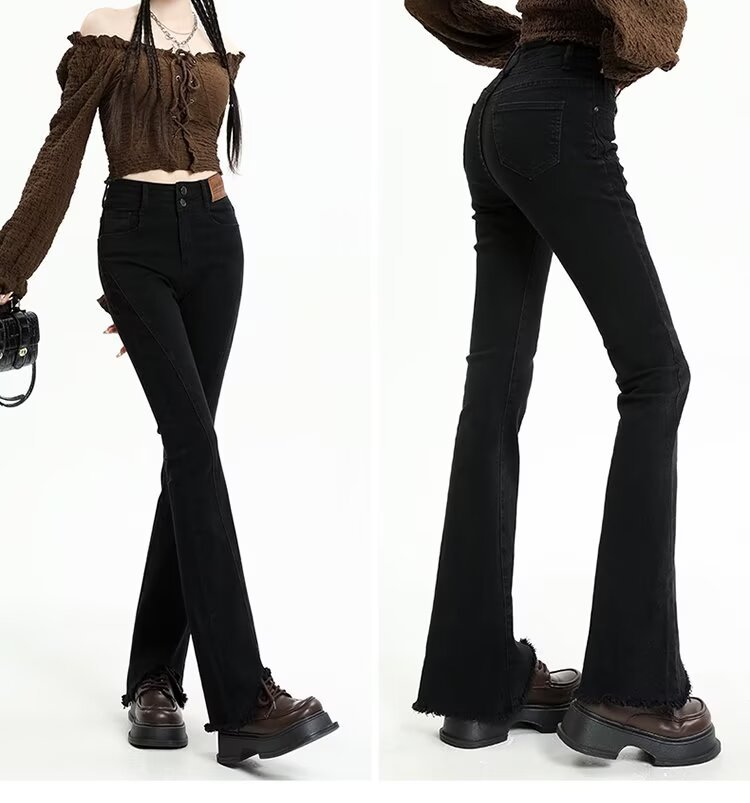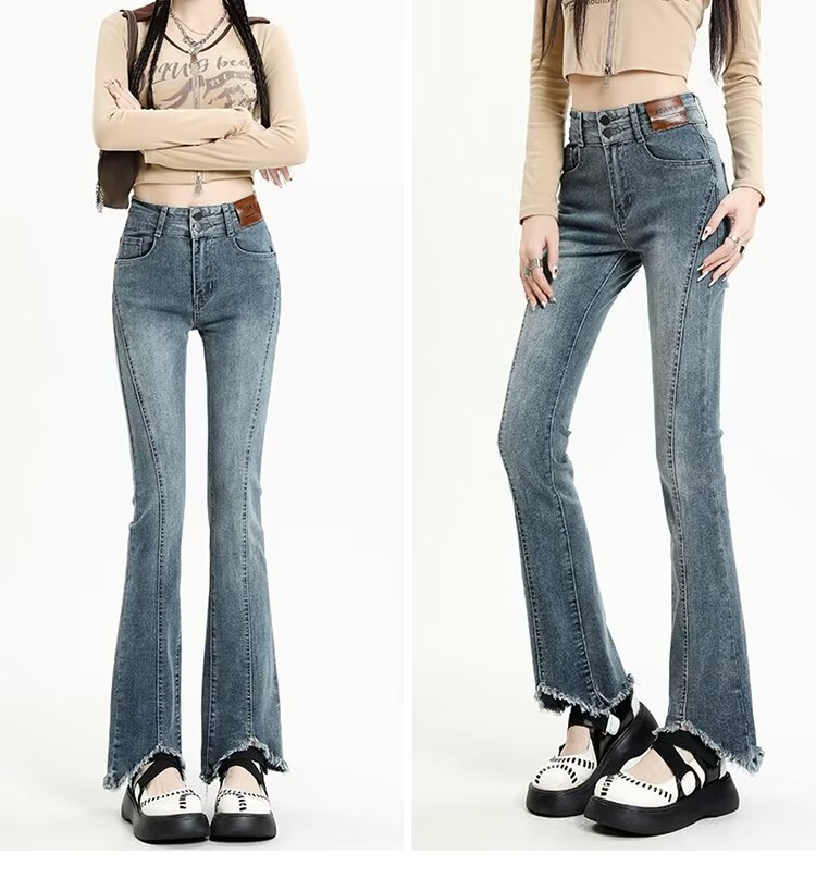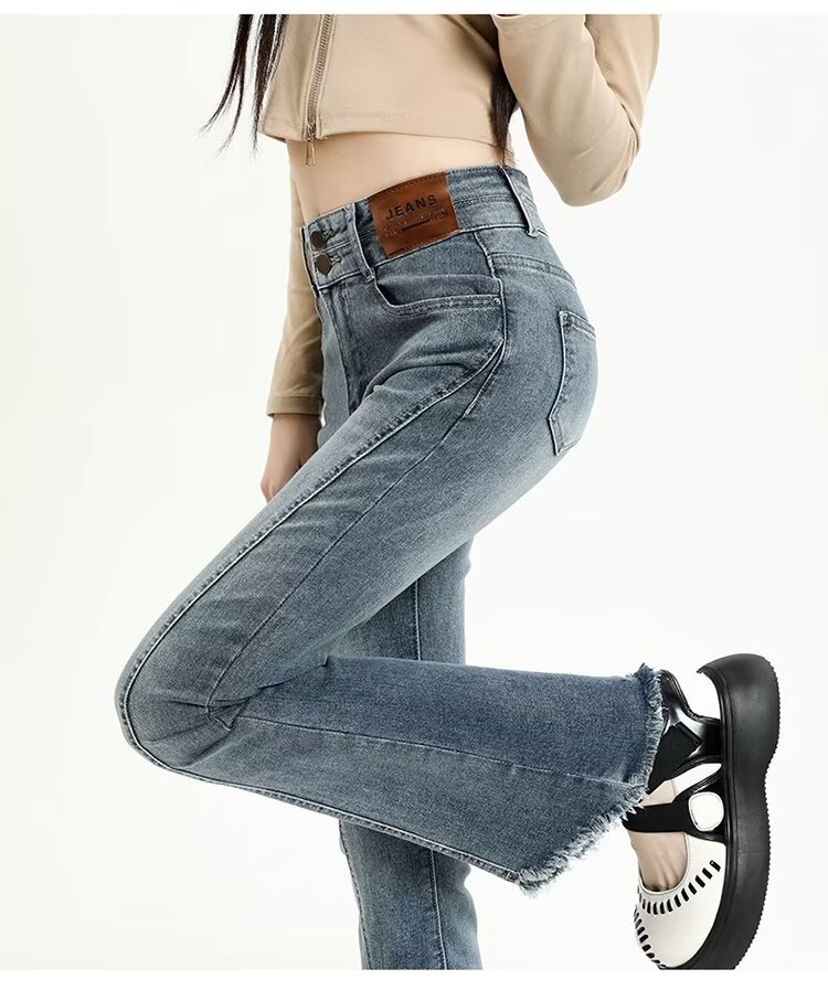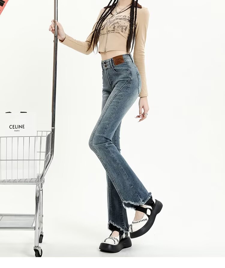 【LYOVEA】韓系高腰 新款修身顯瘦微喇叭牛仔褲