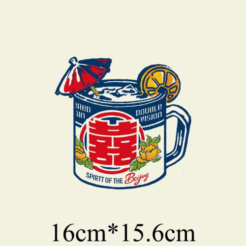【皮卡布】熱轉印貼紙 S-E11囍茶杯 熱熨燙貼 手工diy 熱轉印燙畫 燙畫貼 Thermal transfer
