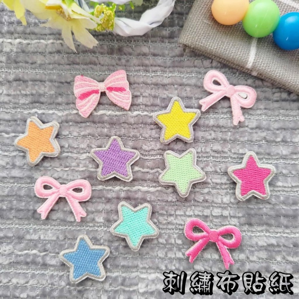 【皮卡布】免熨燙 A5刺繡布貼紙 星星 蝴蝶結 布貼紙 布貼 手帳貼紙 刺繡布貼 貼紙 自黏布貼 刺繡裝飾貼 patch