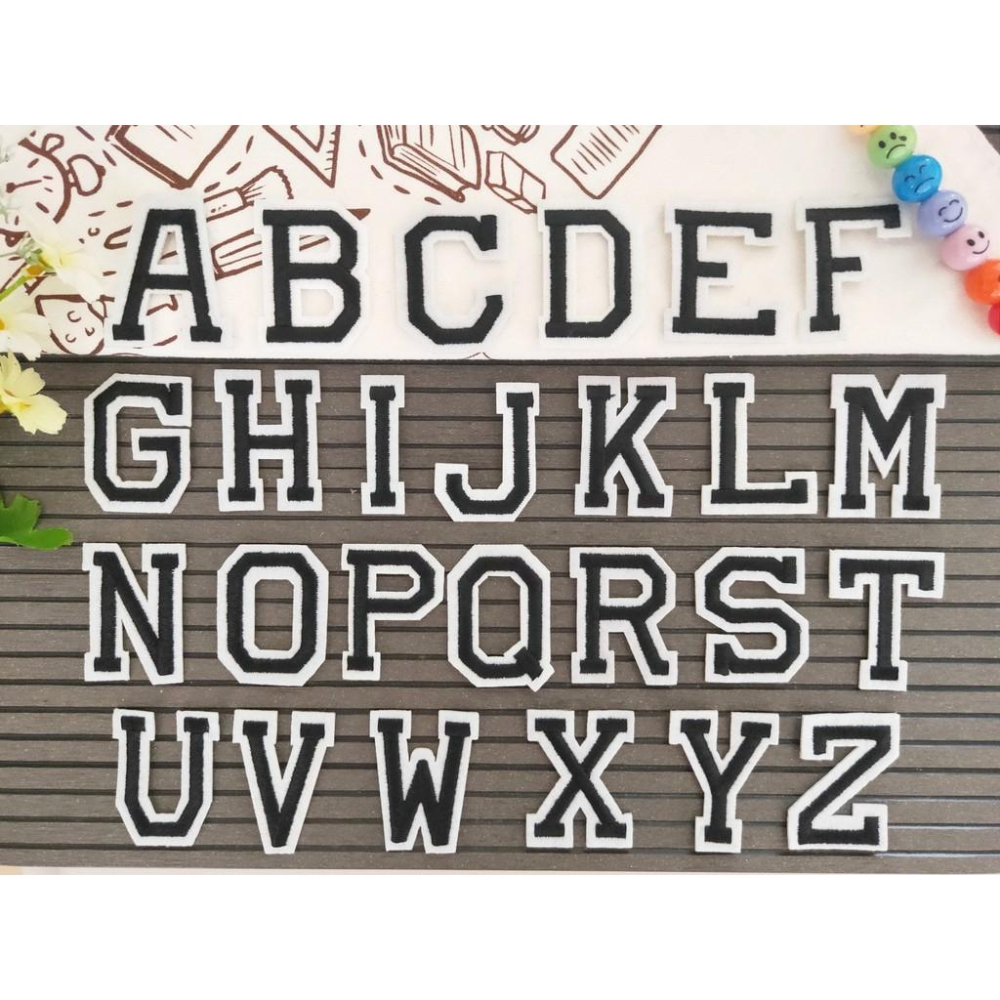 【皮卡布】E3 英文字母 黑字 26個字母 布貼 臂章燙 刺繡燙布貼 徽章 刺繡布貼 補丁 補破洞 燙貼布 熨燙布貼