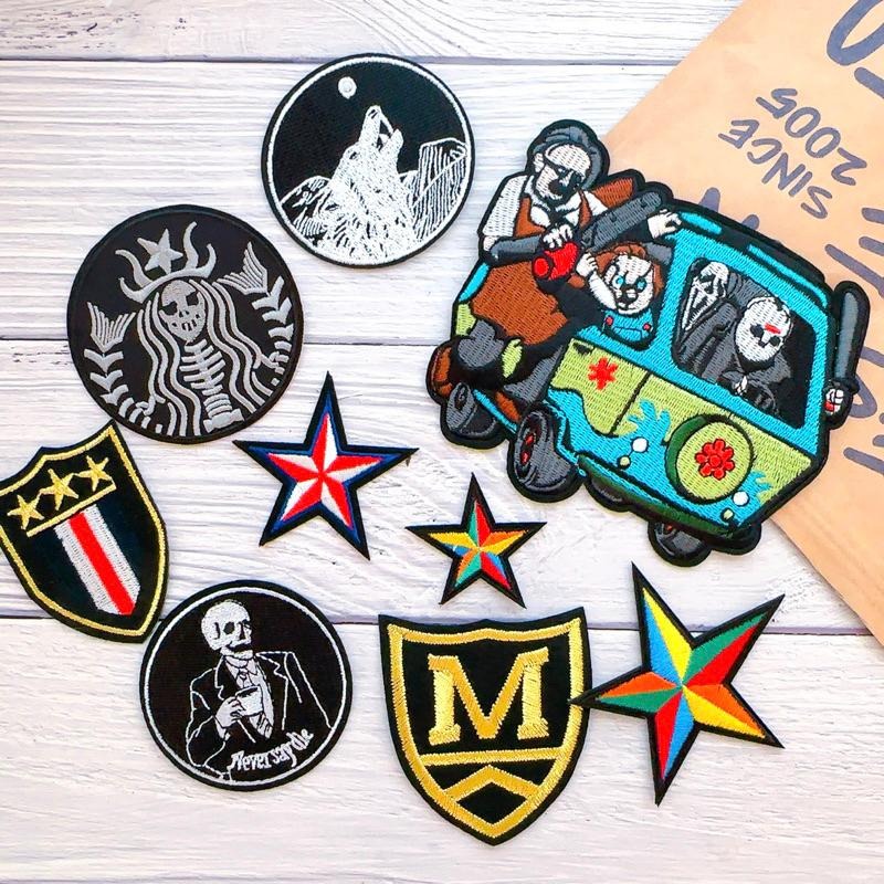 【皮卡布】P10 星星 五角星 狼 骷髏 裝飾布貼 布章 臂章 布標 刺繡燙布貼 徽章 刺繡布貼 魔鬼氈布章 熨燙布貼