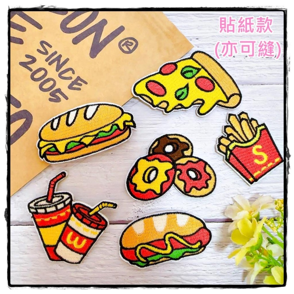 【皮卡布】H1漢堡 熱狗堡 薯條 披薩 甜甜圈 布貼 徽章 布章 刺繡燙布貼 刺繡布貼 熨燙貼 熨燙布貼 Patch