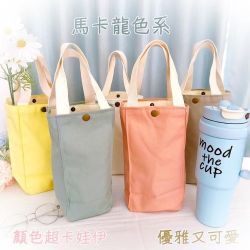 【皮卡布】長形手提袋 水壺袋 雨傘袋 素面手提袋 純色手提袋 素面有扣手提袋 彩繪空白袋 小外出袋 DIY彩繪袋