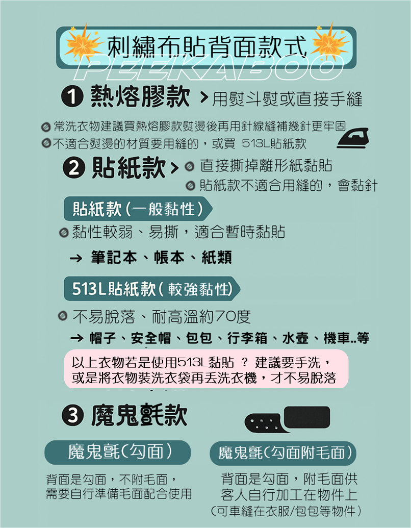 • 513L超黏貼紙(可直接貼包包、帽子.)