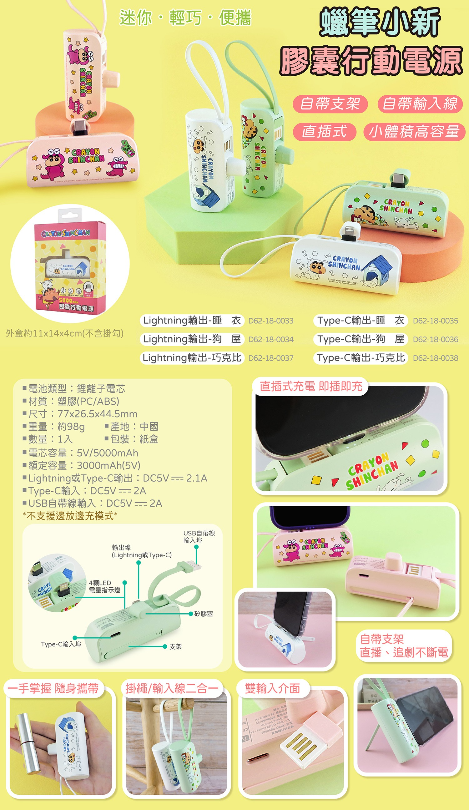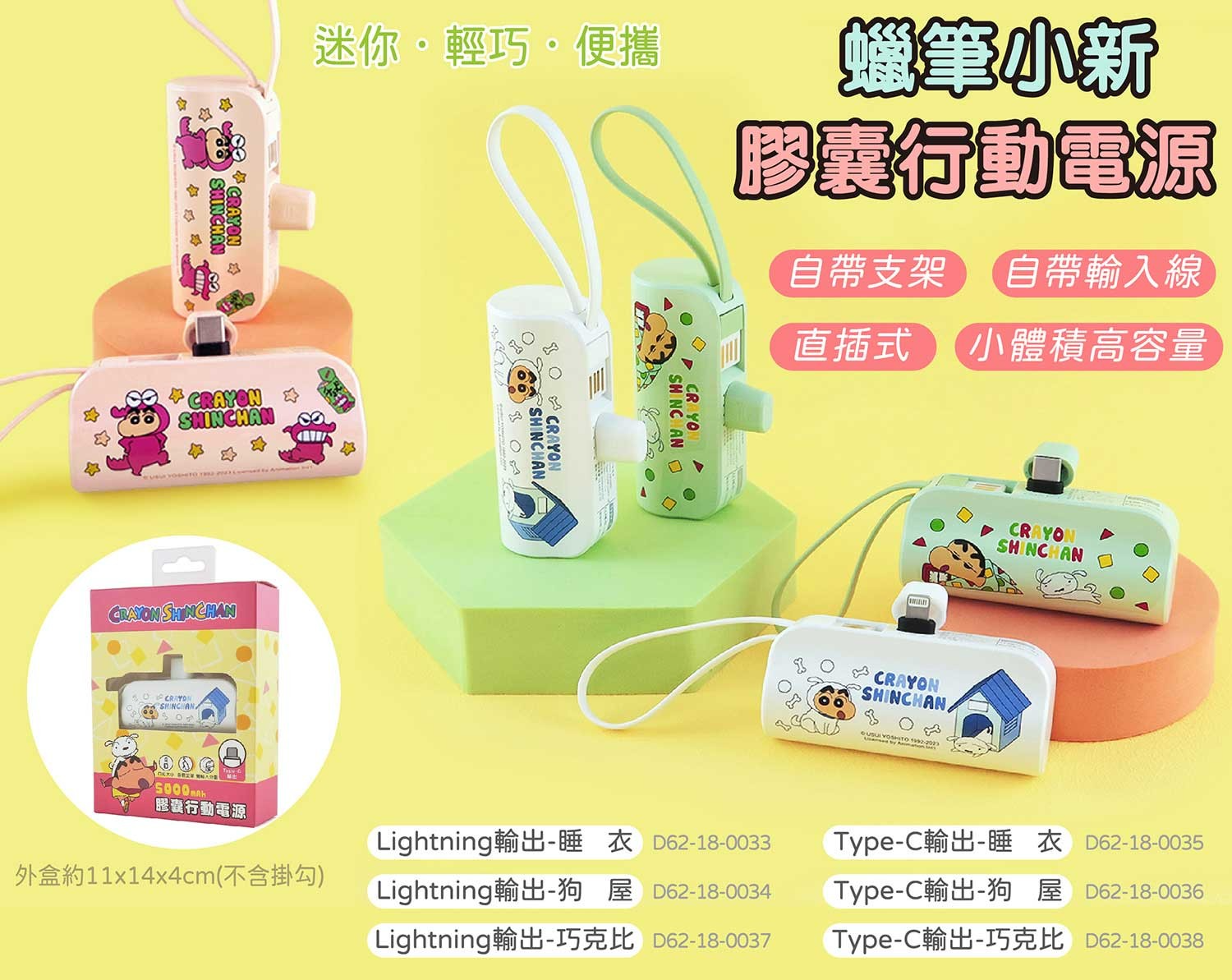 可愛的小新行動電源共有3款外觀,2種接頭。