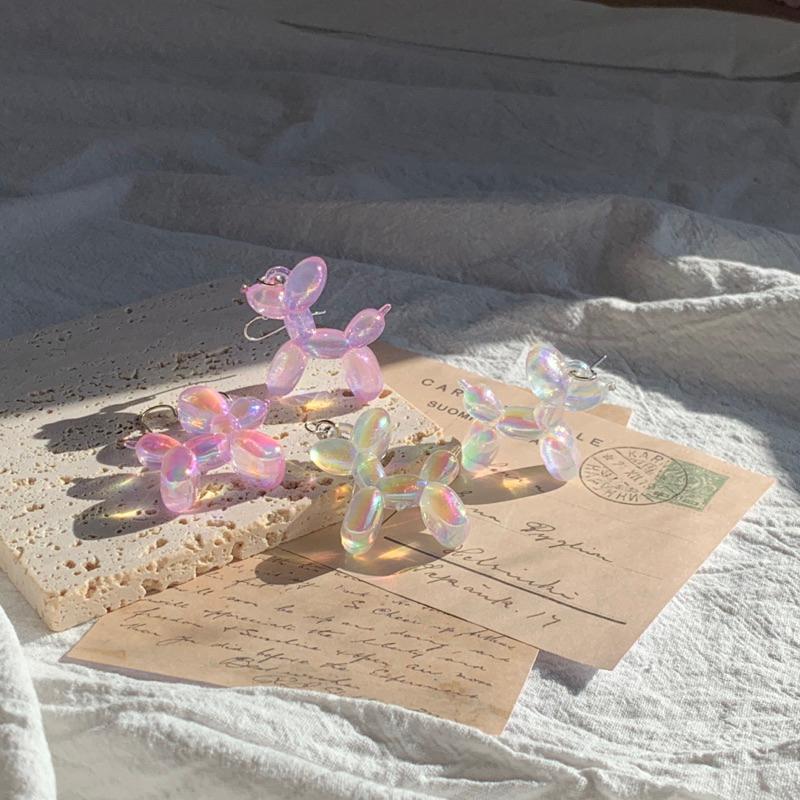 𝗦𝗽𝗿𝗶𝗻𝗚𝘂𝗮|現貨|炫彩氣球小狗 y2k多巴胺日系動物迷你精緻少女心趣味創意耳飾吊飾無耳洞耳夾