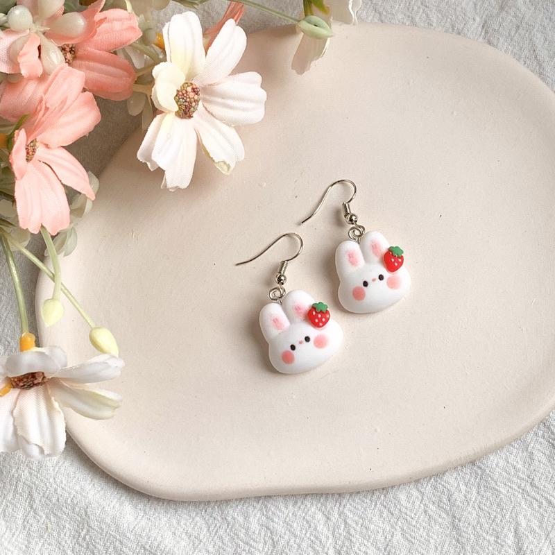 𝗦𝗽𝗿𝗶𝗻𝗚𝘂𝗮|現貨|草莓小白兔耳環 可愛日系動物迷你精緻少女心趣味耳飾無耳洞耳夾