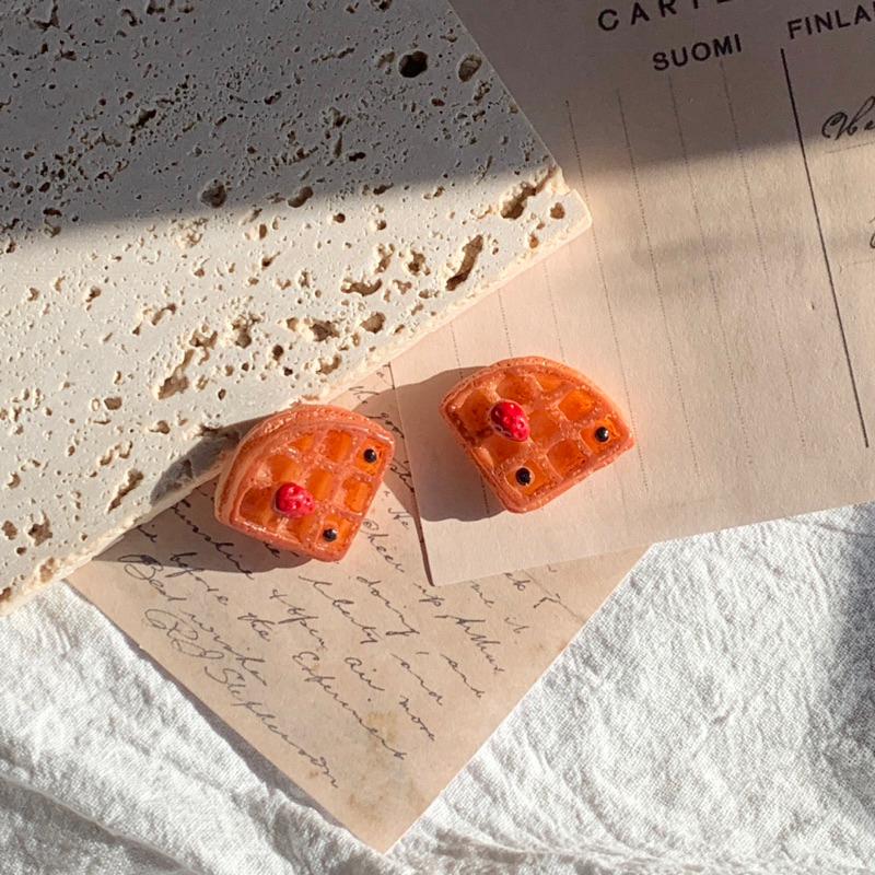 𝗦𝗽𝗿𝗶𝗻𝗚𝘂𝗮|現貨|草莓亮晶晶鬆餅 清新可愛日系食物迷你精緻少女心趣味創意耳飾吊飾無耳洞耳夾