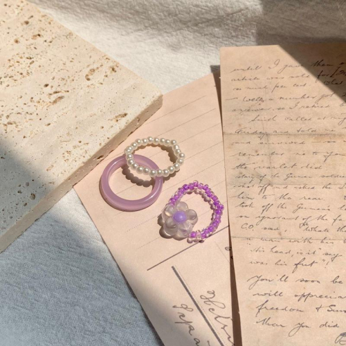 𝗦𝗽𝗿𝗶𝗻𝗚𝘂𝗮|現貨|紫色小花珍珠戒指套組 清新日系文藝溫柔精緻可愛花朵清純少女心串珠戒指
