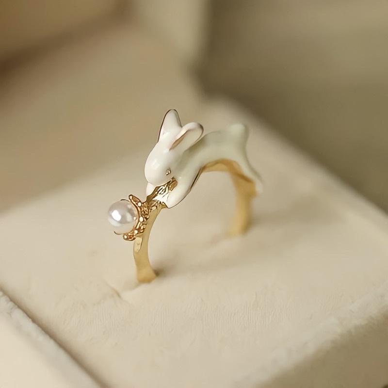 𝗦𝗽𝗿𝗶𝗻𝗚𝘂𝗮|現貨|跑跑小兔戒指 滴釉珍珠日式可愛森系小清新動物造型賣萌指環