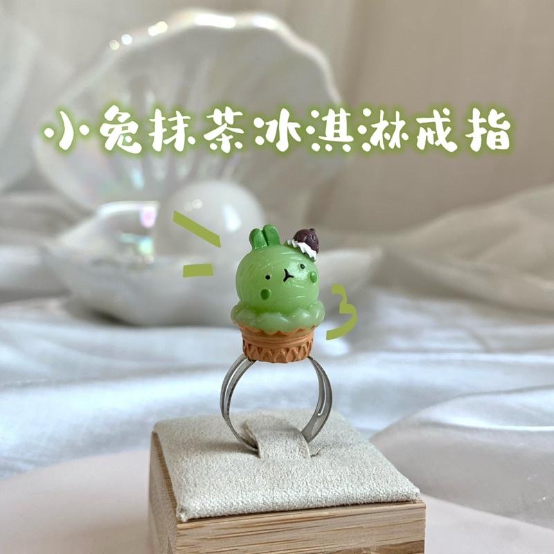 𝗦𝗽𝗿𝗶𝗻𝗚𝘂𝗮|現貨|小兔抹茶冰淇淋戒指 可愛甜美日系軟妹袖珍趣味少女心飾品