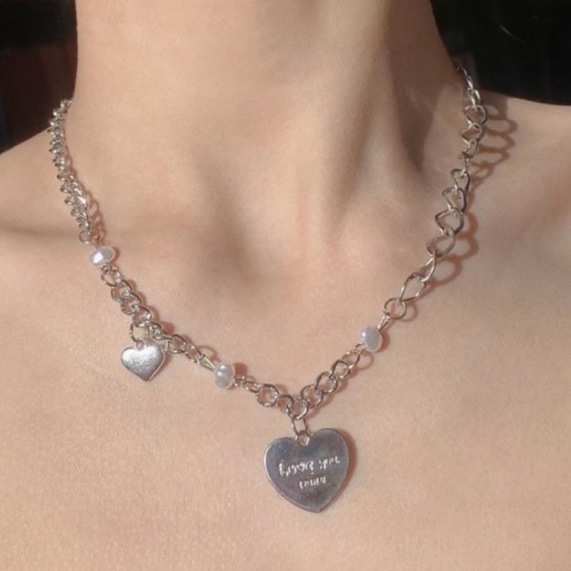 𝗦𝗽𝗿𝗶𝗻𝗚𝘂𝗮|現貨|珍珠貝母愛心項鍊 吊墜字母女高級感網紅百搭鎖骨鏈嘻哈冷淡風配飾