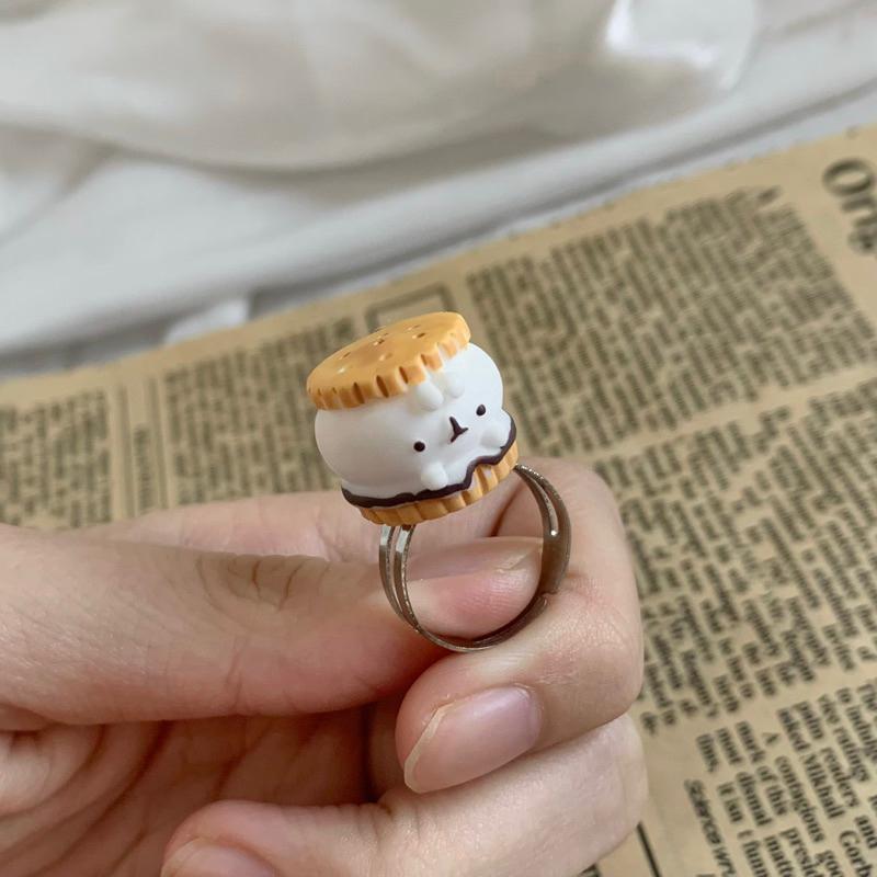 𝗦𝗽𝗿𝗶𝗻𝗚𝘂𝗮|現貨| 小兔夾心餅乾戒指 可愛日系動物迷你精緻少女心趣味創意飾品