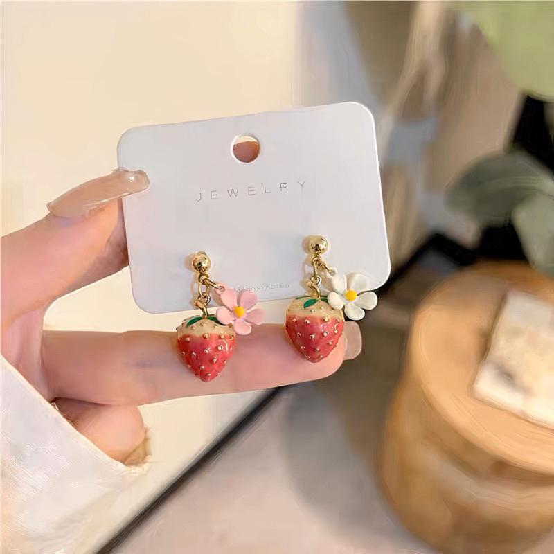 𝗦𝗽𝗿𝗶𝗻𝗚𝘂𝗮|現貨|草莓小花耳環 日系粉白花朵森系清新甜美彩色可愛草莓無耳洞耳夾