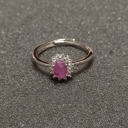這紅寶石戒指。為開口設計。沒有介圍問題。圓形設計,旁邊鑲嵌小鋯石美化襯托。紅寶的嬌艷。本紅寶石為天然紅寶,沒有著色。可放心配戴。