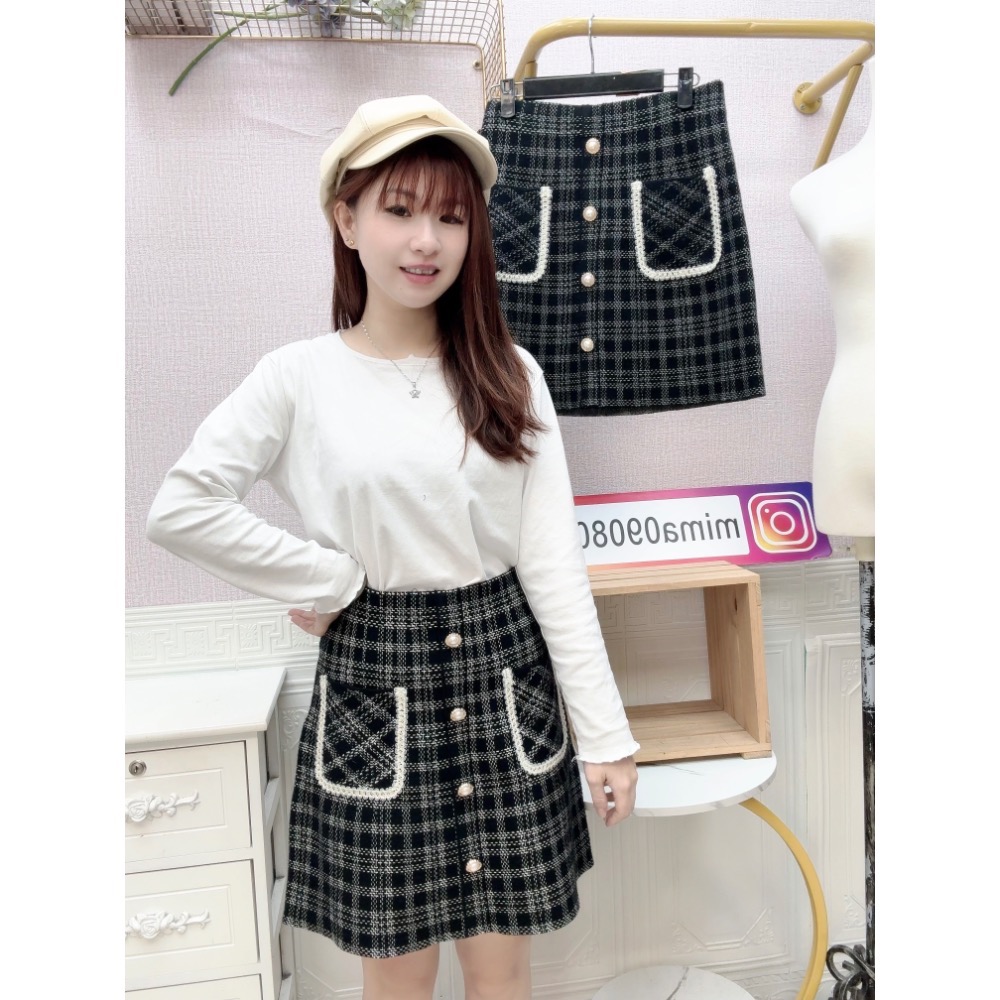 預購商品15天, 出貨時間3-14天(不包含假日) ❤Y273💡小香風格紋短裙🎨黑白 黑灰📏腰33~55cm 臀40cm 長44cm 💰399