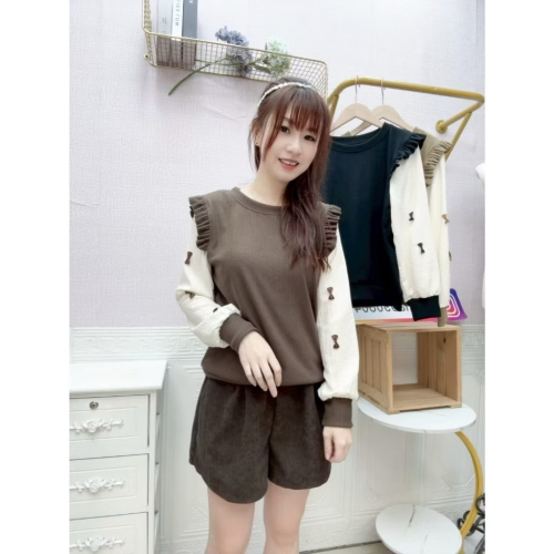 ❤Y616💡立體蝴蝶結拼接木耳邊上衣🎨黑卡咖📏胸47cm 長58cm 💰399