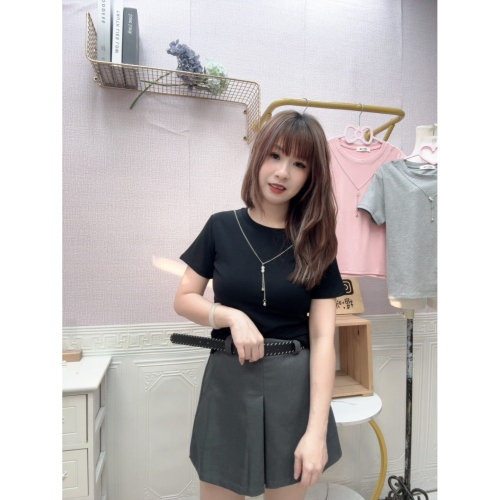 預購商品15天, 出貨時間3-14天(不包含假日) ❤A342💡個性素面附項鍊螺紋棉彈力上衣🎨黑白灰粉📏胸42~54cm 長48cm 💰399 材質:針織