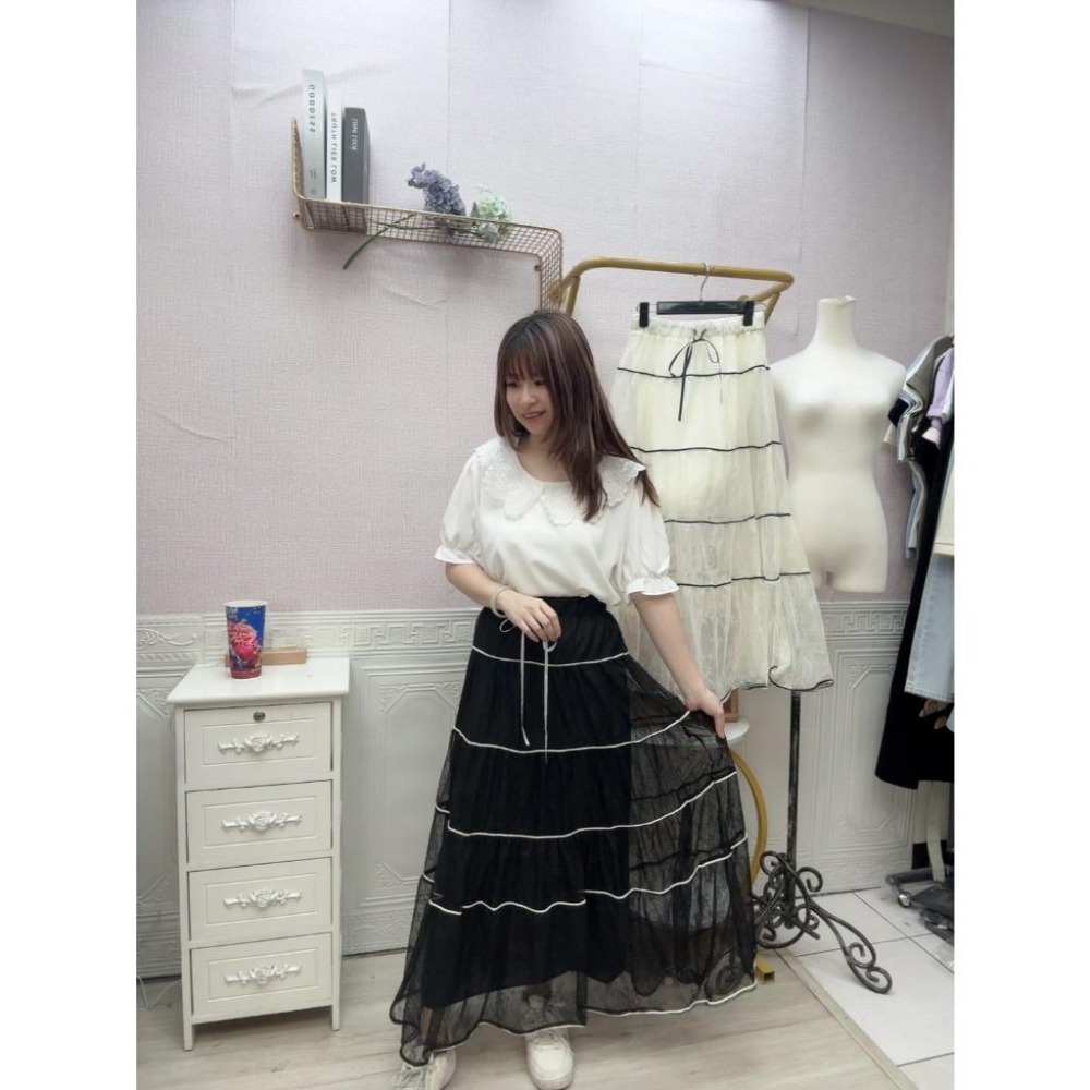 預購商品19天, 出貨時間3-14天(不包含假日) ❤A382💡蕾絲配色滾邊長裙🎨黑白📏腰32~45cm 臀60cm 長92cm💰499 材質:蕾絲