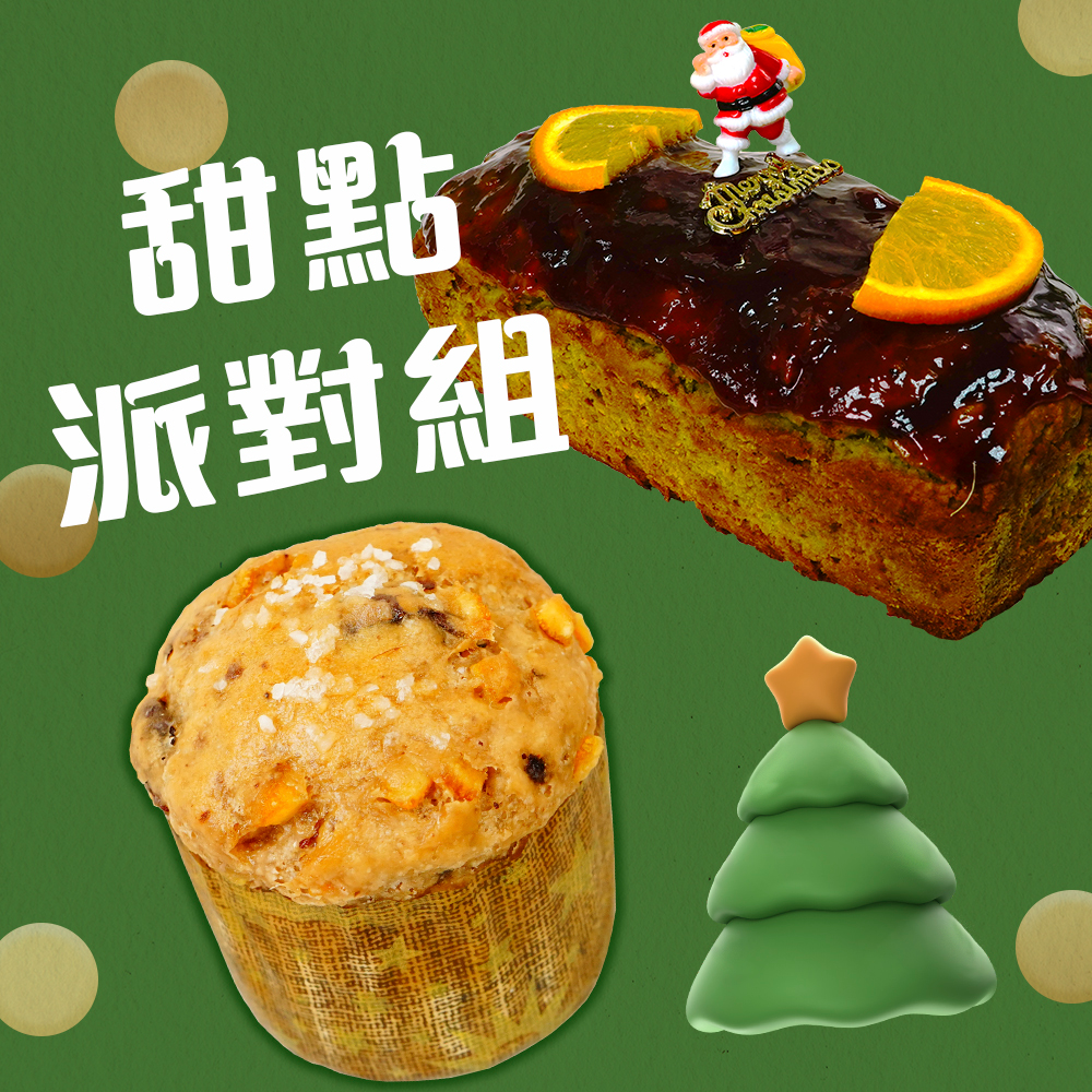 【奇蹟烘焙】甜點派對組-義大利水果米包-潘娜朵尼/抹茶磅蛋糕(蛋素)