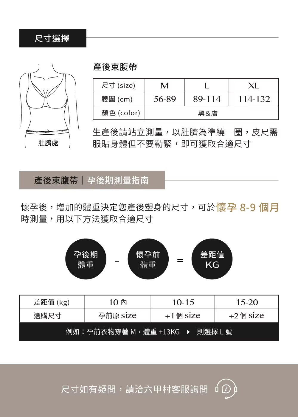 1.自然產:產後7-14天開始使用 ※力道不應過緊,以免腹腔壓力過大造成下垂