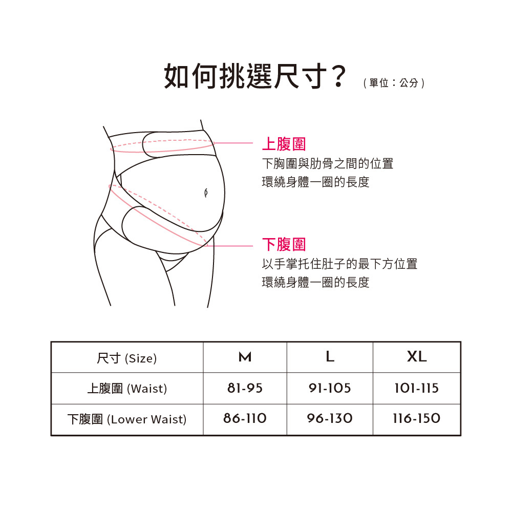 3.穿著時,托腹帶上方輔助固定帶不需過度拉緊。