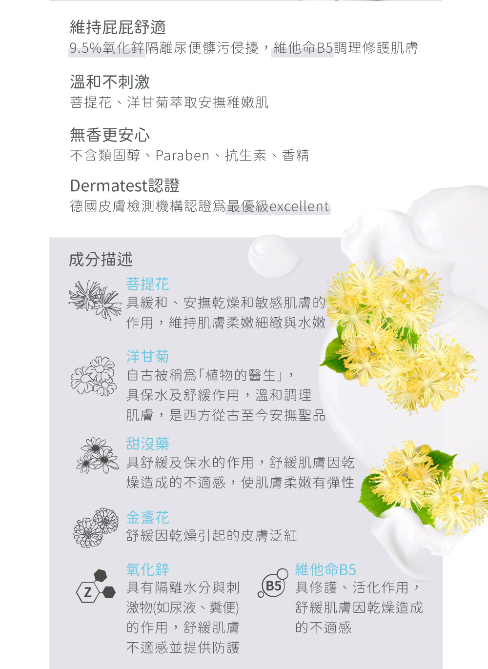 ★ 9.5%氧化鋅,隔絕髒汙帶來刺激