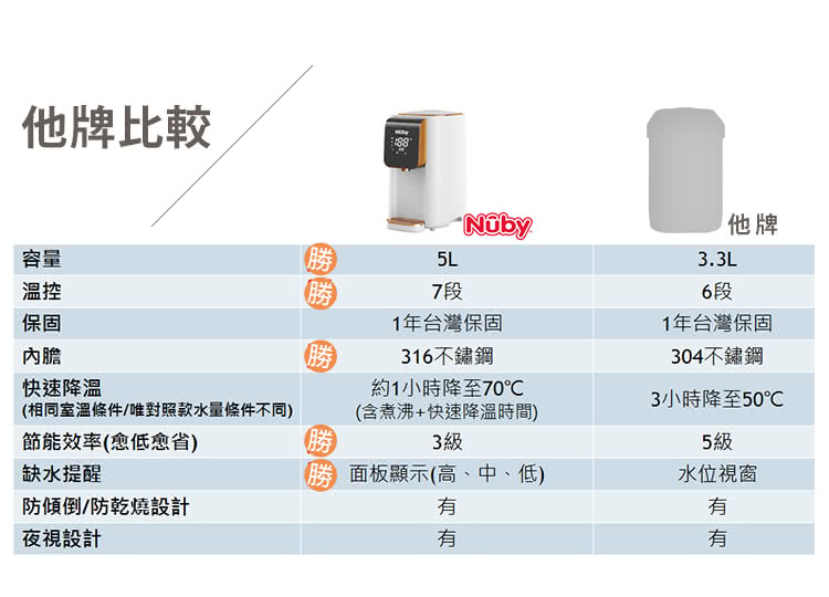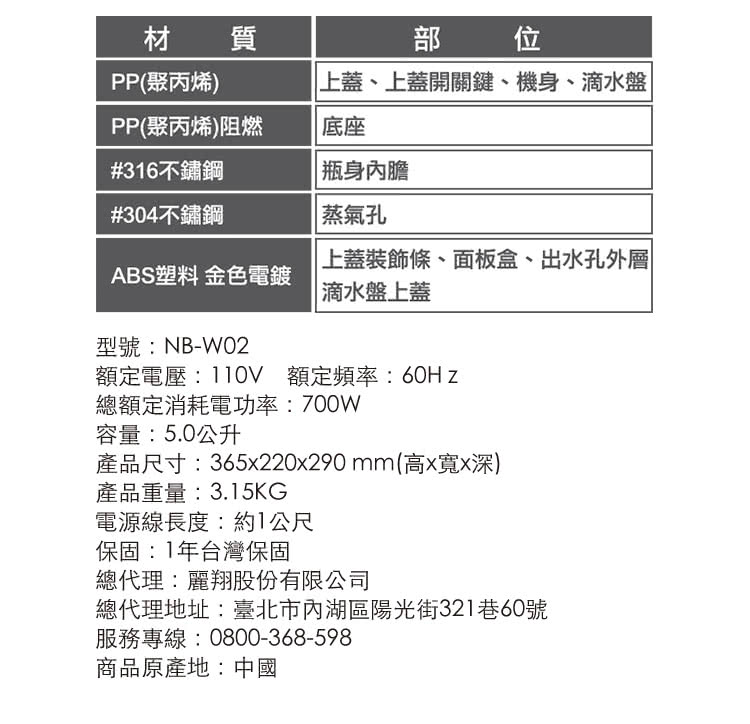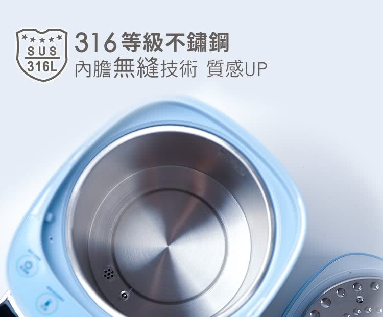 首創 316 等級不鏽鋼內膽;NB-W02為內膽無縫改款設計