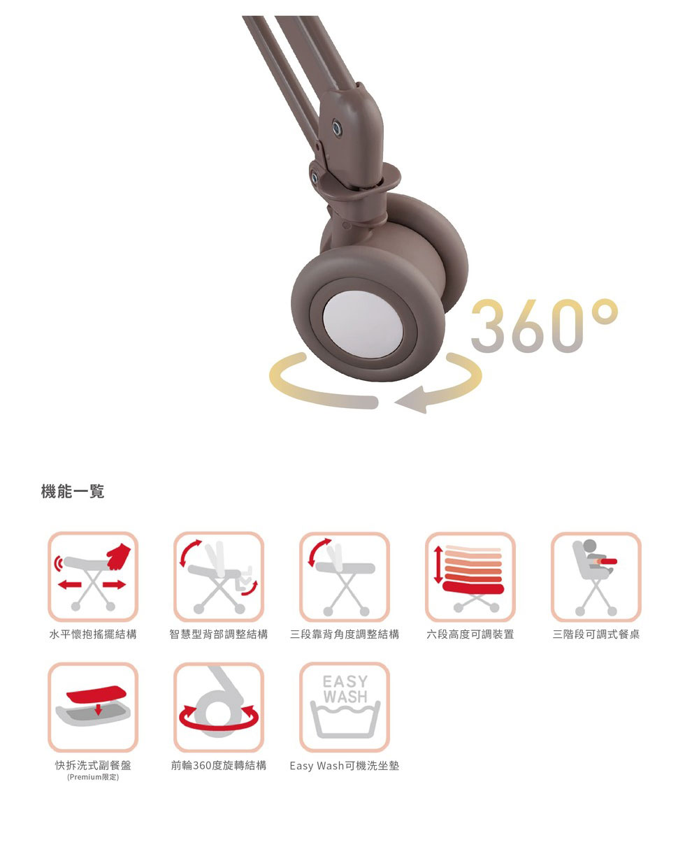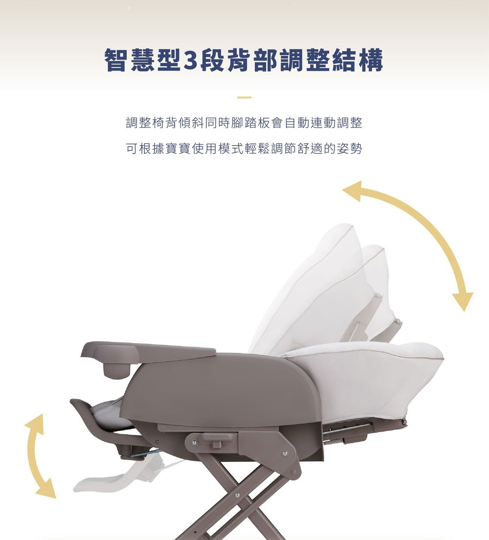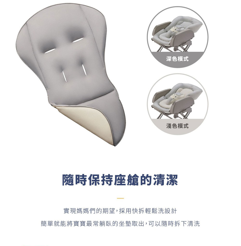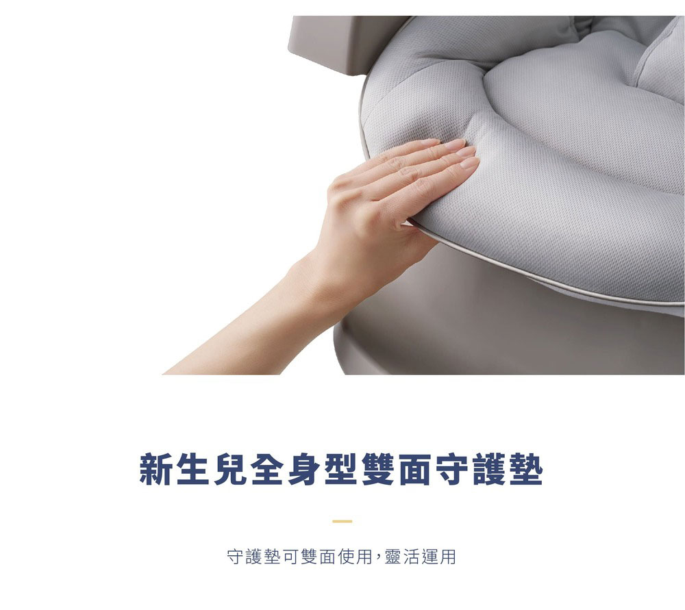 搭載「厚實蓬鬆的全身型雙面坐墊」,並且採用「快拆式可機洗坐墊」功能,減輕媽媽的負擔。